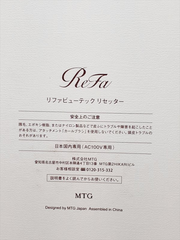 | 名 称 | 未使用 エムティジー MTG ReFa リファ リファビューテックリセッター ReFa BEAUTECH RESETTER RE-BI-03A ブラック | ||