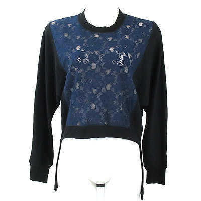 | 上品な黒x紺の組み合わせ 身頃部分はシースルー素材、袖部分はカットソー地に なっています。 後身頃の丈が長く、身頃部分はシースルーになっていますので あわせるインナーでコーディネートが楽しめます バスト約86cm 後着丈約68cm 前着丈約44cm 袖丈約59cm 肩幅約37cm 【サイズ】:(XXS) 【素 材】:(ポリエステル62% レーヨン33% ポリウレタン5%等) 【 色 】:(黒、紺) 【程 度】:(A) **管理番号** 2507-20150427-011 299 013 | ||||