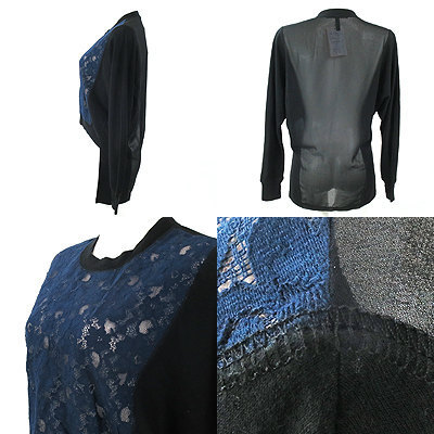 | BCBGマックスアズリア 黒x紺シースルー長袖トップス | ||||