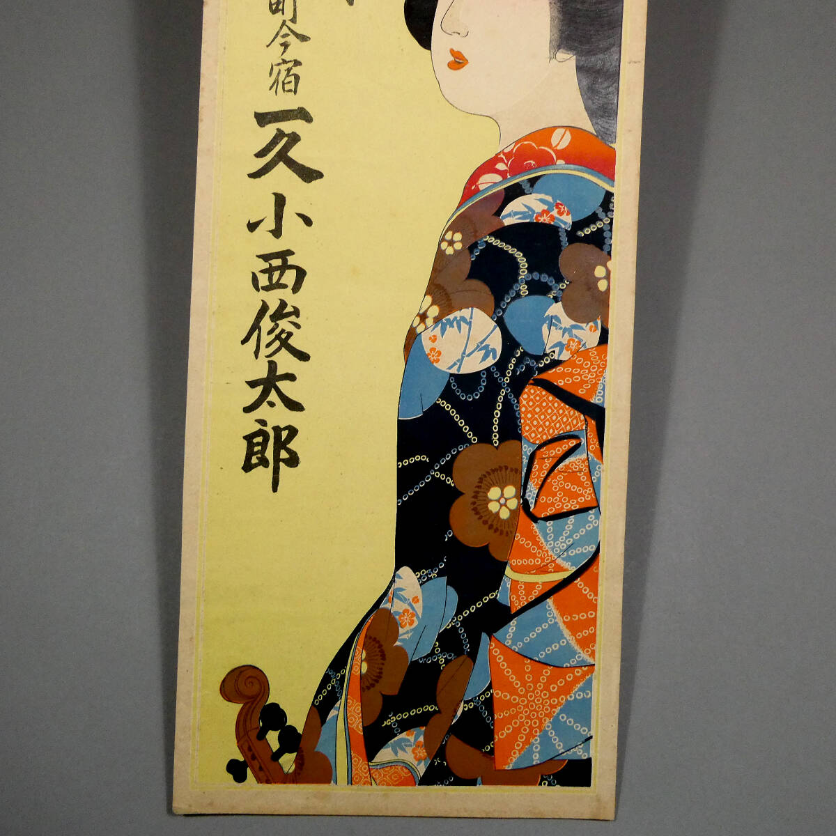 | ■ 明治~大正時代頃 石版画 引札 呉服 太物 古着商 沼館町今宿 秋田県平鹿郡 美人画 ■