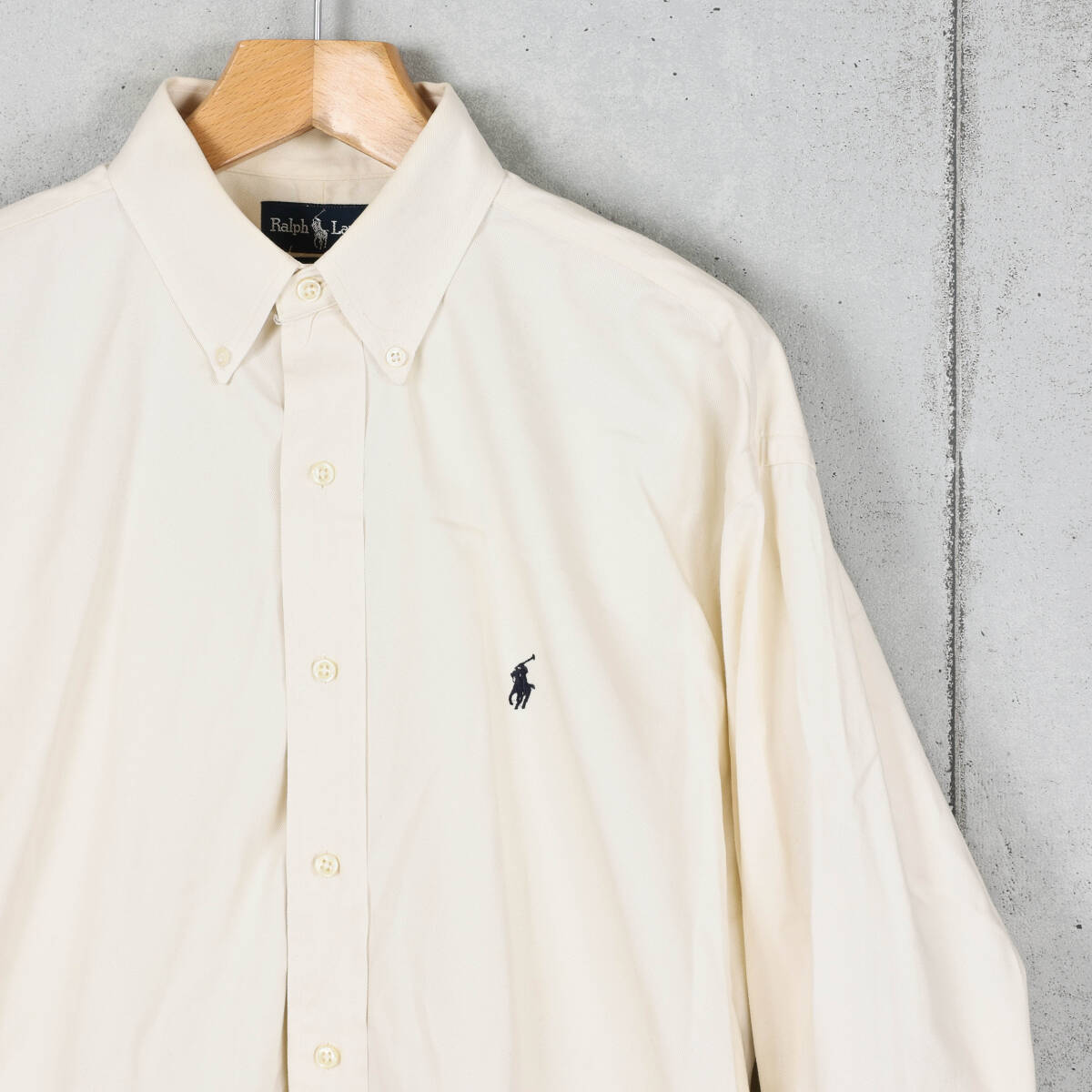 【ブランド】 Polo Ralph Lauren / ポロラルフローレン 【アイテム】 BLAKE ツイル素材 ボタンダウンシャツ 【商品説明】 アメリカで購入しました、ラルフローレンのツイル素材が使用されたボタンダウンシャツになります。 【カラー】 オフホワイト 【コンディション】 使用に伴う色落ちや擦れなどがあります。 【サイズ】 サイズ:L 身幅:68cm 肩幅:56cm 着丈:85cm 袖丈:63cm |