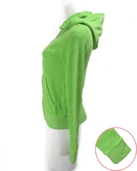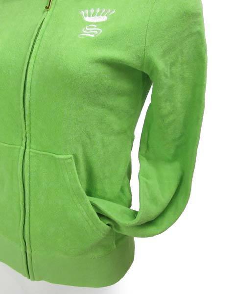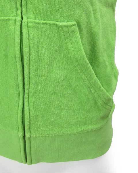 | はっきりとしたグリーンのパイル地パーカー。胸元にワンポイントのシンプルデザインジップアップの持ち手がゴールドのJでさりげないアピールがあります。カジュアルシーンで活躍してくれます。 |