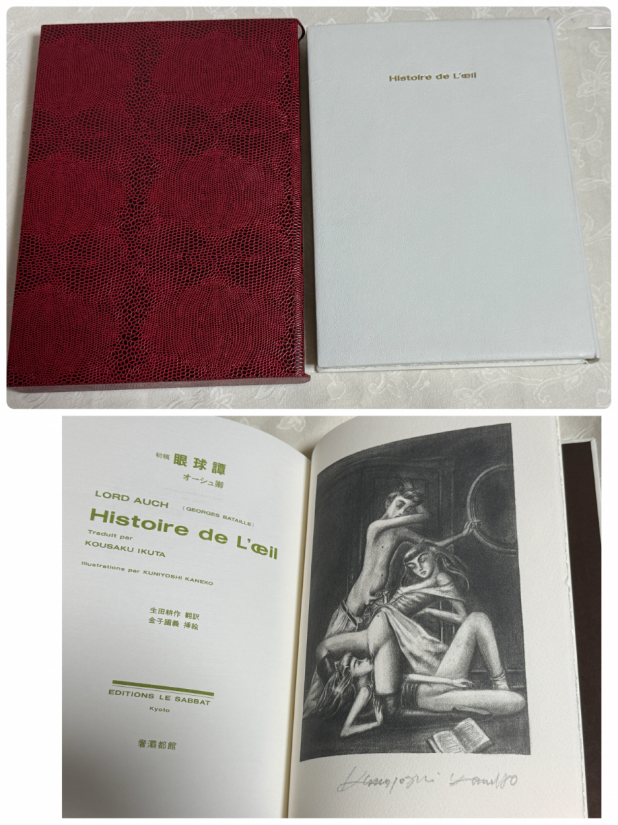生田耕作 オーシュ卿(バタイユ)『初稿 眼球譚』限定150部版 金子国義リトグラフ7葉入 総革装 函付 美本 奢都館 サバト館 1997年