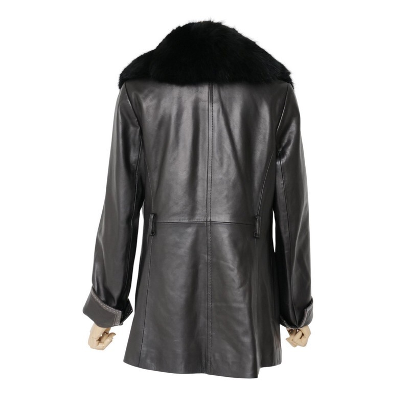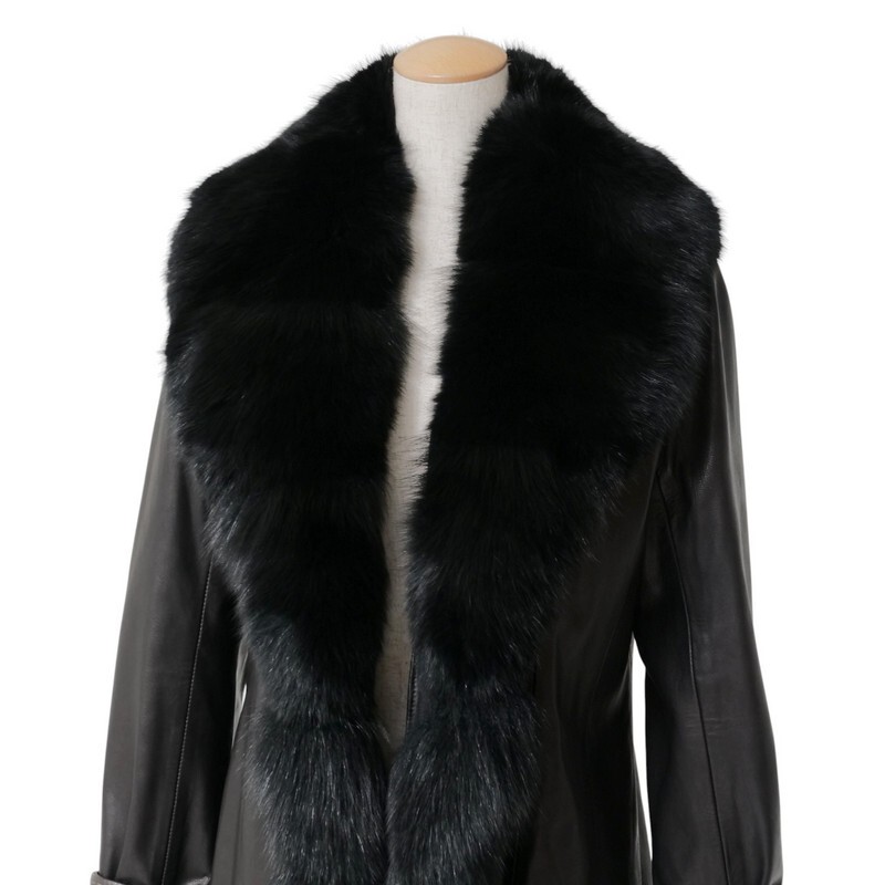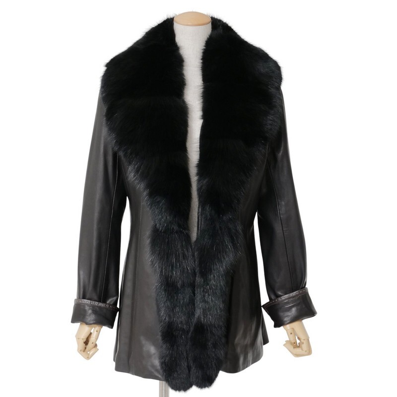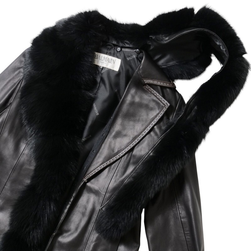 | 羊牛どっち?GS4628●バルマン/BALMAIN*フォックス/FOX ファー装飾 レザージャケット コート*本革*羊革*レディース サイズM*ブラック | |||