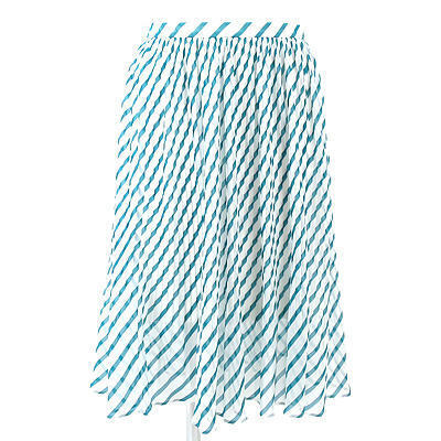 | シャープな印象を演出する斜めストライプ柄スカート♪ 清楚で爽やかな雰囲気漂うカラー使いも魅力ですね☆ 軽やかなシフォン素材なので歩く度に揺れ動き、 裏地が裾より短くなっていて、程よい透け感が 女性らしさを引き立ててくれます。 プリーツは裾に向かってひだが少なくなっております。 ウエスト周りに少し毛羽立ちが見られます。 バックファスナー仕様となります。 ウエスト約68cm スカート丈約61cm 【サイズ】:(38)W61 H88 【素 材】:(外・内・別布/ポリエステル100%) 【 色 】:(白、グリーン) 【程 度】:(AB) 管理番号 54141203-013 427 041 | ||||