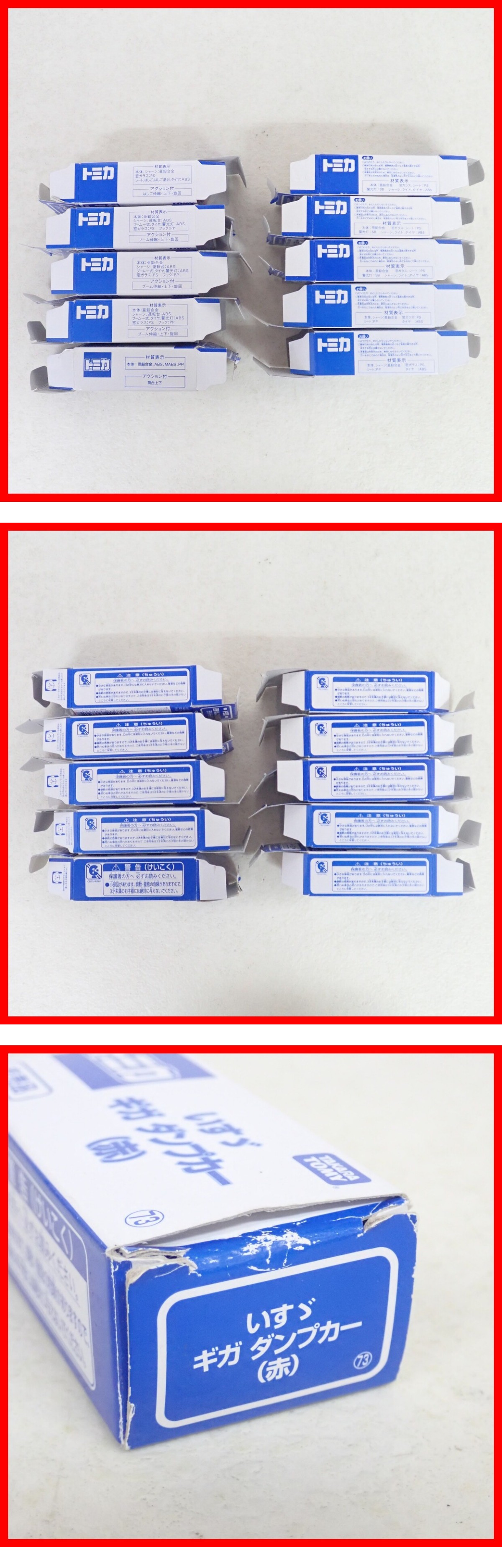 | トミカ 非売品/イベントスペシャル等 日産ディーゼル クレーン車/ホンダ NSX-R/スバル360 等 まとめて計10点セット トミー ダブリ有 ■箱にスレ、角スレ、イタミ、汚れ、シミ、折れ、破れ、黄ばみ、ヤケ、キズ、めくれ、曲がりグセがあります。 ■車体にスレ、キズ、汚れ、ヤケ、黄ばみ、塗装浮き、塗装剥がれがあります。 ■いすゞ ギガは箱と中身が一致していないです。 ■上記以外は未チェックです。 ■撮影に使用したアクリル台は付属いたしません。 ■写真のものが全てです。付属物の有無や状態については写真からご判断ください。 ■付属物については細かいチェックはしておりません。万が一、欠品があったり余計な物が入っていたとしてもご了承ください。 ■商品によりますが、発売されてから10年以上経過している中古品であることをご理解いただいた上でご入札をお願いいたします。なお、新品や美品、そのほか特記事項がある場合は別途明記します。 ■ご落札いただいた本体及び箱や取説、付属品、梱包材などは1つでも廃棄や破損をしないようにお願いいたします。 ■商品のご落札後、廃棄や破損をした場合、あるいは【修理や整備、カスタム、付属物の抜き取りやページの抜き取り/書込み等、ご落札者様の目的に応じて何らかの手が加えられた商品】に関しましては、問題があった場合でも対応や返金などの対処ができませんのでご注意ください。 |