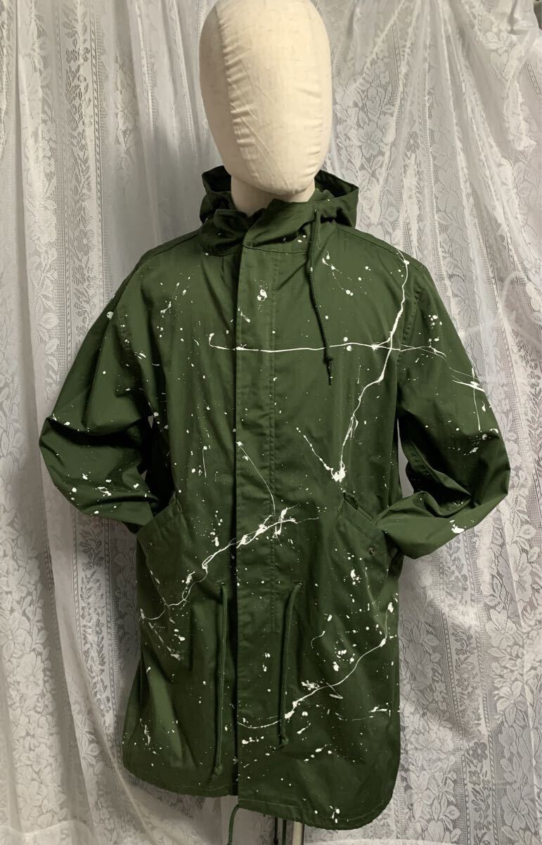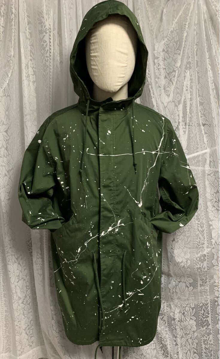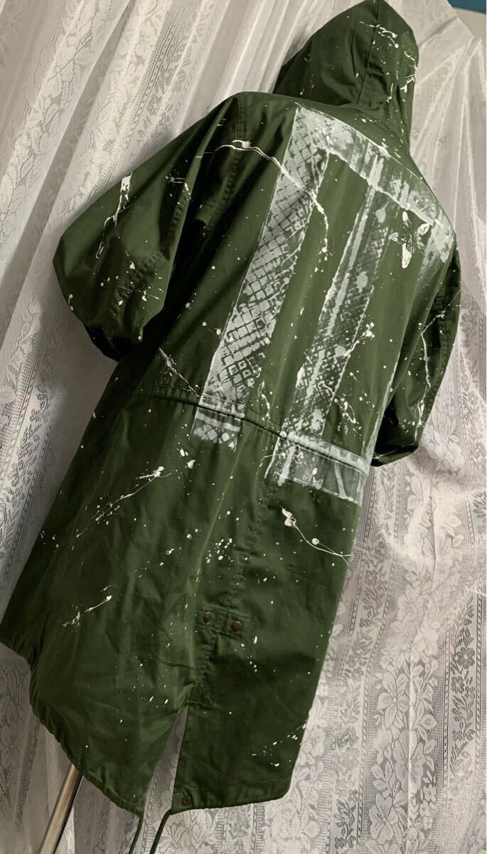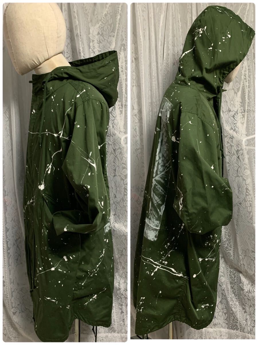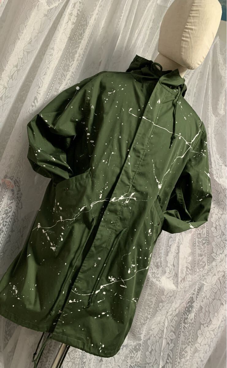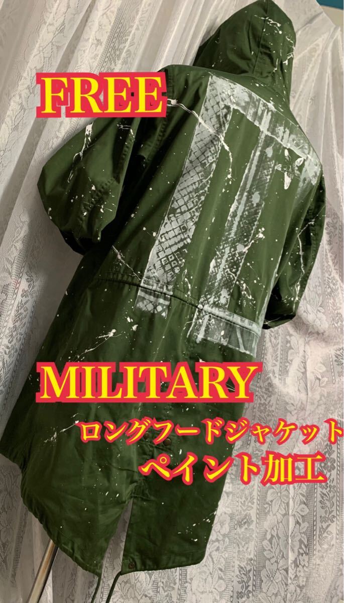 MILITARY ミリタリー ロングコート ロングフードジャケット ペイント加工 カーキ FREE| 出价者 | 信用 | 价格 | 时间 |