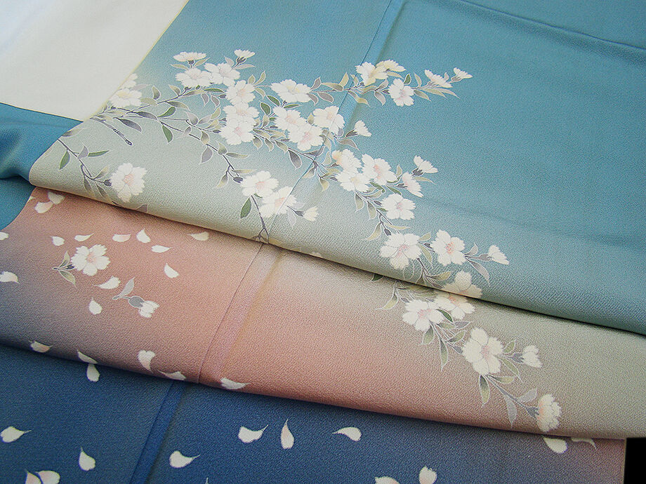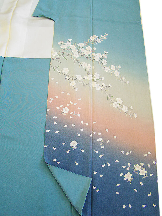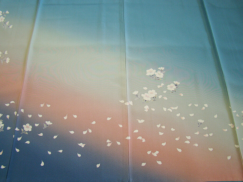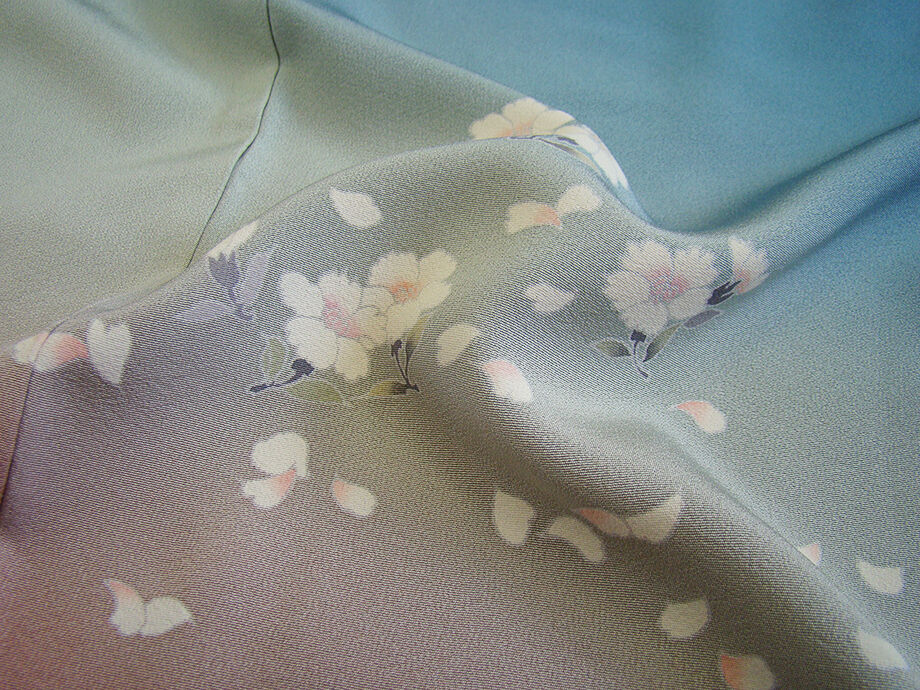 | 商品説明 | こちらのお品は「袷」ですので10月から5月までお召頂ければと思います。 とてもしなやかで柔らかな手触りの着心地良い重めの上質な極上ちりめん地の生地、 浅はなだ色地に裾にかけて淡い銀朱、紺鼠、柳鼠色のぼかし染に花草や花びら柄の染、 気品に満ち溢れた彩りが正統派のお着物として一枚は欲しい逸品の素敵なお着物です。 八掛は共色に柄入り(正絹)、幅広い年代の方にお召頂けます。 |