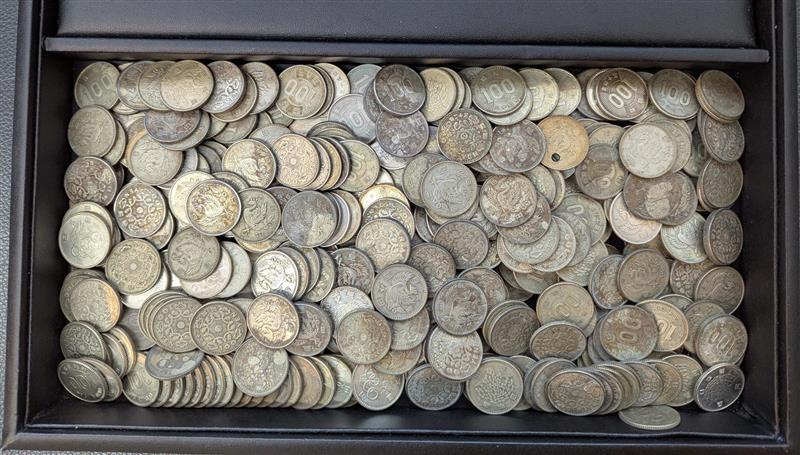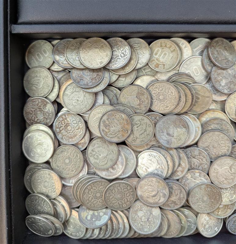 | #14600A 【100円銀貨まとめ!!】 総重量約2kg以上 合計約357枚 稲穂 オリンピック 記念硬貨 銀貨 | ||