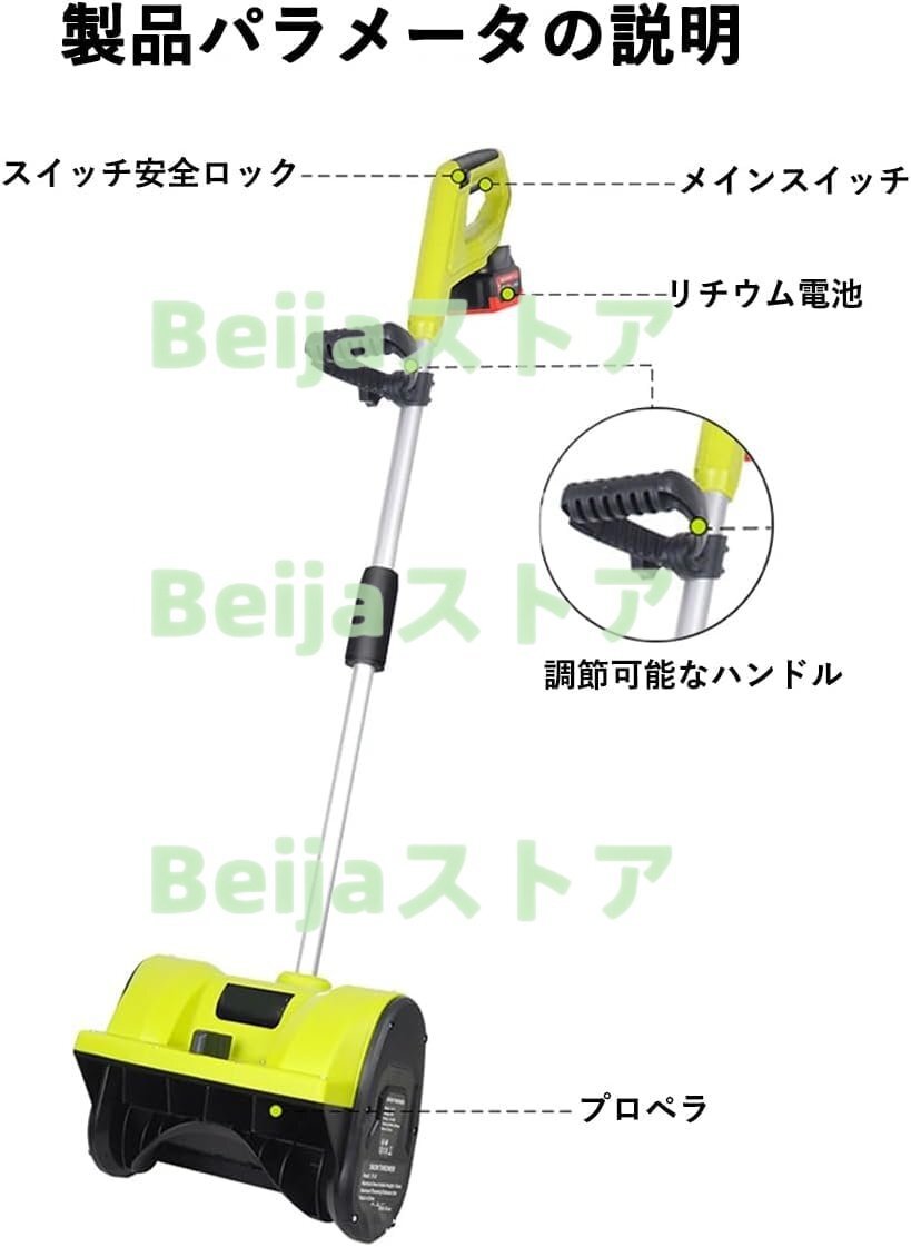 製品説明強力な効率性: 当社のハイパワー 1200W 電動除雪機で冬の雪の作業に楽に取り組みます。 除雪スコップ 電動 最大限の効率を実現するように設計されており、目詰まりのリスクを軽減しながら、スムーズで中断のない除雪体験を保証します。環境に優しい: 従来のガス動力除雪機に別れを告げましょう。 除雪スコップ 電動 当社の電気モデルは排出ガスを出さないため、環境に配慮した代替品となります。 さらに、より静かな動作を体験し、使用中の騒音公害を最小限に抑えます。ユーザーフレンドリーなデザイン: 除雪幅 32cm、高さ 16cm、最大 8m の投射距離を備えたこの除雪機は、利便性とパフォーマンスが最適化されています。商品情報:製品名: 除雪スコップ 電動除雪幅:32cm除雪高さ:16cm最大投雪距離:6m製品電圧: 20V/24Vバッテリー容量:4.0Ah製品電力: 1200W重量:約5kg色:ブルー、グリーン、オレンジごください:1.手動測定により、わずかなサイズの誤差(1?3cm)が発生する可能性があります。2.光やディスプレイ設定の違いにより、色が若干異なる場合があります。3.ご購入またはご使用中にご質問やサポートがございましたら、お気軽にお問い合わせください。 迅速かつ丁寧なサポートを心がけております。