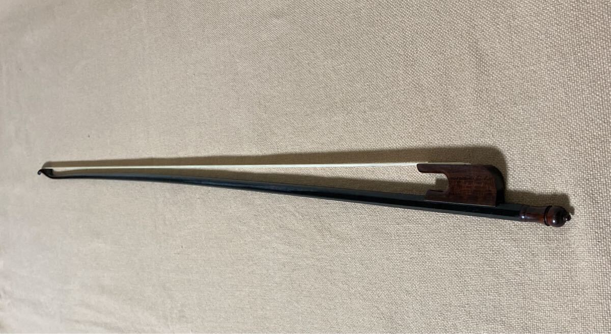 友人から依頼されたバイオリンかビオラの弓です。重さ→49g、69.5cm(つまみの先まで)です。材質はカーボンのように思えます。| 出价者 | 信用 | 价格 | 时间 |
