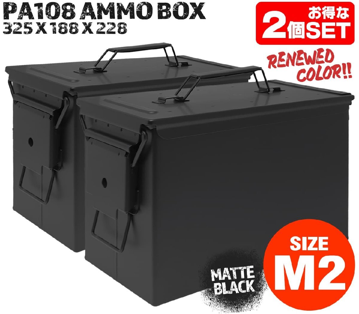 商品説明 ITEM INFO SAW-BOX弾薬ケースをリアルに再現!バッテリーや工具・アウトドア用品の収納に!密閉性が高いので炭入れにもオススメ! MILITARY-BASE(ミリタリーベース)PA108タイプ SAW アンモボックス 2個セットです。 M2A1ボックスの派生モデル、1周り大きくデザインされた弾薬ケース。Fat.50と呼ばれるモデルです。 昨今ではM249の200Rdsボックスマガジンの運搬/保管がメイン用途のため、SAW-BOXとも呼ばれています。 蓋にはパッキンが内蔵されているのである程度の密閉性があります。防滴&防塵ケースとしてや乾燥剤を同梱しての防湿ケースとしてもオススメです。スコープやドットサイト、モデルガンの火薬等などのミリタリーアイテムから、キャンプ道具や木炭などのアウトドアグッズの保管・運搬にピッタリ。 また防火性も高いのでリチウムバッテリーの保管にも使用できます。 ミリタリーな雰囲気が全開なので、お部屋や店舗、ガレージ、トランポなどのインテリアグッズとしてもどうぞ! 商品基本情報・スペック ITEM SPEC ●商品名 : MILITARY-BASE(ミリタリーベース)PA108タイプ SAW アンモボックス 2個セット ●商品番号 : H8012BSAW-2PC ●カラー : BK(ブラック) ●素材 : スチール ●サイズ : 325mm×188mm×228mm ●重さ : 3.3kg ●オススメの用途 : エアガンのBB弾やマガジンの保管アーモボックス、耐火容器としてリチウムバッテリーの保管・運搬箱、DIY用品や自転車・バイク・車の工具を収納するツールボックス、密閉性を活かした炭入れやカメラのレンズ保管箱、インダストリアルなインテリアアイテム、オートバイのパニアケースなどなど 注意事項 ITEM NOTE ∇商品固有の注意事項 ※表面に多少の小傷や小さな凹み、塗装ムラがある場合ございます。 ※気密性向上のため、ロックは硬めになっています。開閉の際は手を挟まないようにご注意ください。 ∇ご購入時の留意事項 ※商品はすべて点検してからのお届けになります。商品によってはパッケージの開封等を行う場合もございますことをご了承ください。 ※商品には万全を記しておりますが、万一不備な点がございましたら、お手数ですがお問い合わせフォームにてご連絡頂ますようお願い致します。なお、海外製品につきましては、輸入時についた若干の傷、痛み等が見られる場合がございます。 国内製品のような完全品をお求めの方はご遠慮下さい。 ※商品が適合外であった場合、またはお客様都合による交換・返品・返金は出来ません。よくお確かめの上、ご購入下さい。 ※モニター環境により、実際の商品の色と若干異なる場合がございますのでご了承下さい。 ※他サイトでも同時販売の為売り切れの際はご了承下さい。 ※売り切れの際は早急にご連絡させて頂きます。(当社休業日を除く) 関連商品 RELATED ITEM |