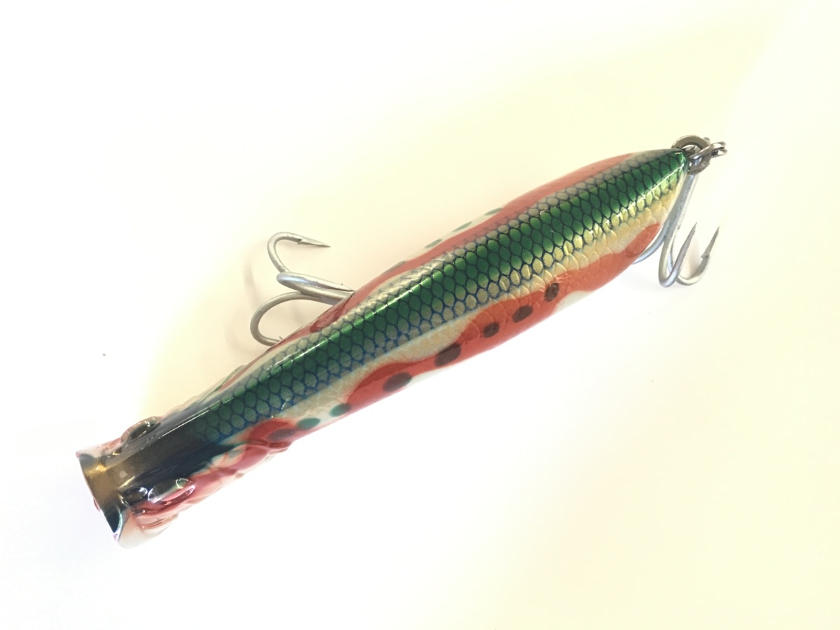 | 商品説明 | 引っ張り強度100kg。貫通ワイヤー構造。 未だ見ぬモンスターと突然の出会いが訪れる外洋。 オフショアフィッシングでは、不意の大物に対応できる強度、 想いのままに動かせ獲物を惹きつける操作性、 あらゆる条件に対応できる道具が不可欠だ。 VAGABONDは世界的にメジャーなベイトフィッシュ・ 鰯(サーディン)系の魚をメインモチーフに、 軽やかな性能と、使い続けられるリアルさを両立した ポッパー・IWASHI POPPERを創り出した。 熱いファイトを繰り広げるブリ・ヒラマサ・ツナ(マグロ類)・ カツオ・トレバリー・巨大シイラ・スズキ類など、 モンスタークラスのターゲットにも難なく対応する、 引っ張り強度100kgの貫通ワイヤー構造を構築。 基本となるリーダーセッティングは80lbとし、 125mmという全長ながら45g(ST66#2/0使用時)というウェイトを実現。 後部に行くほど膨らんだなすび型形状でウェイトを確保し、 ストレスの無いロングキャスト性能と安定した飛行姿勢で、 ナブラの向こう側・ハニースポットの狙った場所に キャストをコントロールできる。 大き目で下顎がやや抜けた特徴的なカップ形状は、 引き抵抗を軽減しつつ、アピール力の在るスプラッシュから、 ロングジャークによるバブリング・ウォーキング・ 集魚効果の高いナチュラルで魅力的なポップサウンドまで、 あらゆるアクションに柔軟に演出する。 ビジュアル面では鰯や古代魚ターポンをモチーフにする 魅力的なフォルム、生きた魚の艶かしい発色を VAGABOND独自のデザインでリアルに再現した。 VAGABONDプロスタッフの長年の経験と基礎研究から導き出された フィッシュイーターを魅了する艶かしいアクション・操作感・ キャスタビリティを凝縮したソルトウォーターポッパー IWASHI POPPER。 ※推奨フック及び標準装備フックについて VagabondではIWASHI POPPERをマグロゲームで使用する場合、 設計上推奨フックをカルティバST-66#2/0としております。 カルティバST-66#2/0を装着した際の合計は約45gとなりますが、 標準装備のフックは汎用性の高いVMCフックを使用しておりますので、 合計で約41gとなります。 カルティバST-66#2/0とVMCフックのウェイト差は 1本で約2.36g、2本で約4.7gの差がございます。 シングルフックに交換される場合、 シャウト シングルクダコ #5/0等が カルティバST-66#2/0と同等のウェイトとなります。 フック交換の目安としてご活用ください。 | ||||