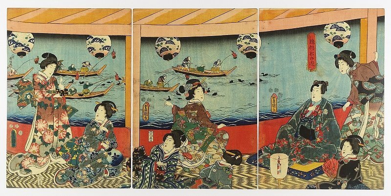 題名 鵜飼船御遊 三枚続 (源氏絵)