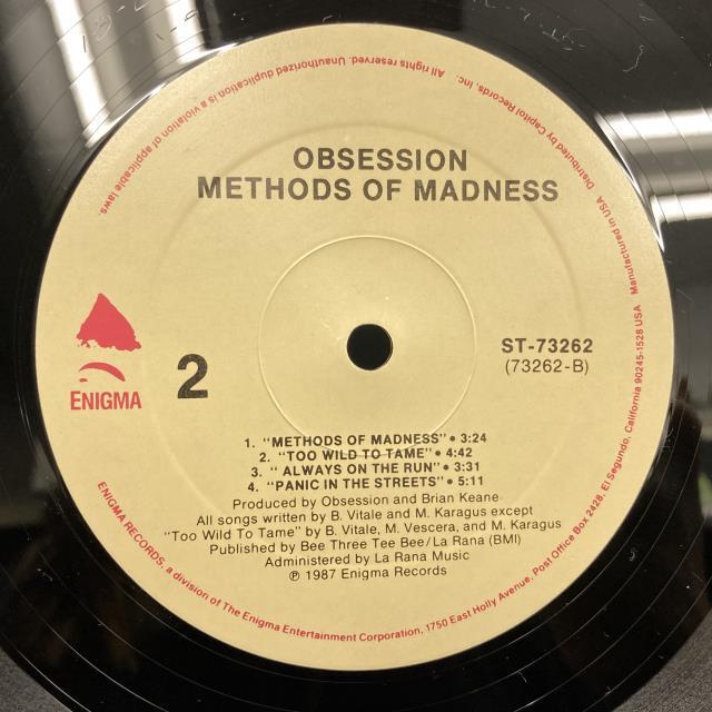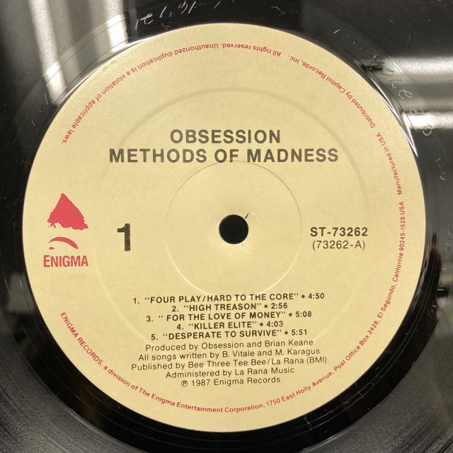 | 【アーティスト】 OBSESSION 【タイトル】 METHODS OF MADNESS 【規格番号】 ST73262 【商品説明】 US-ORIGINAL/ENIGMA CS,SHRINK(SOC),HYPE-STICKER US:正統派,87年2ND 【状態】 EX+/EX |