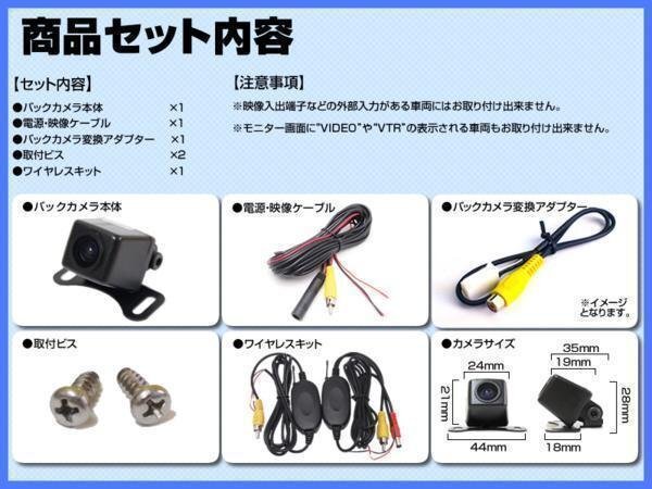 | ■視認性の高い広角タイプ 広角カメラなので視認性も高く、より確実な確認が出来ます。 また、バックカメラとして評価の高いCMOSセンサーを搭載しております。 ■ワイヤレスキット付 映像信号を付属のワイヤレスキットで送受信させることが出来るため、煩わしい映像配線処理が比較的簡単に行なえます。 ■専用の接続アダプター付き 映像ケーブルの接続は、専用の映像変換アダプタが付属しますので、無加工で接続可能です。 ※注意事項※ メーカー純正品ではございませんので、純正品をお求めの方は購入しないで下さい。 |