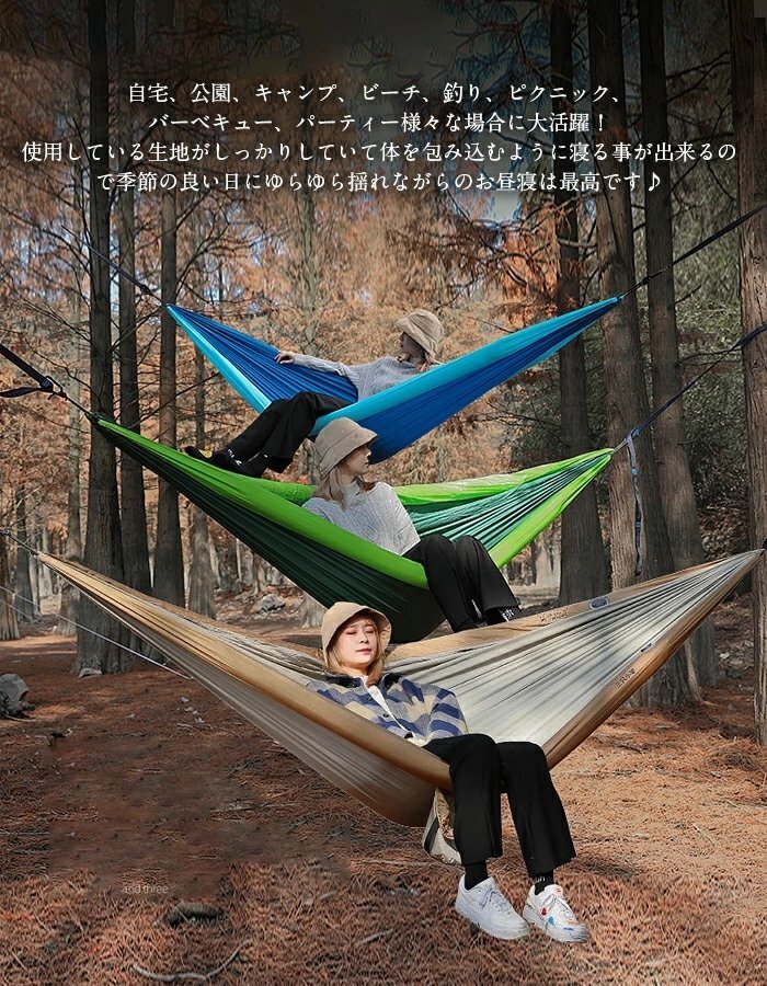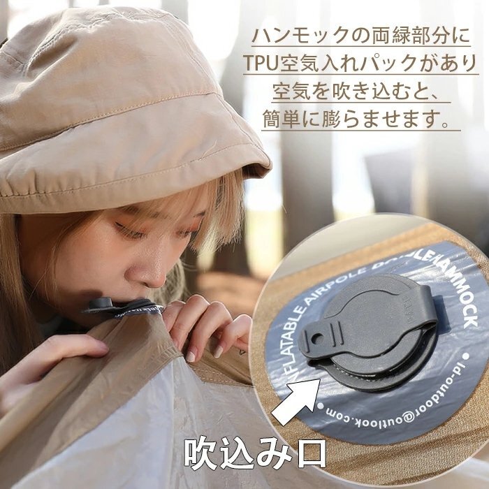 ハンモック 空気入れ 痛くない 安定 通気 速乾 軽量 丈夫 幅広 専用ベルト カラビナ付 収納バッグ付 耐荷重300KG アウトドア ☆3色選択/1点 [浏览原始页面]