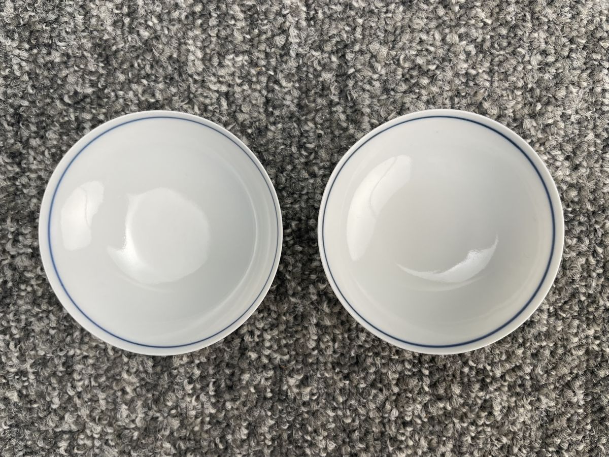 A686 杉田祥平 清閑寺窯 染付金彩 杯 二客 共箱 京焼 酒器 ぐい呑 盃 磁器 民藝品 伝統工芸 古道具 コレクション