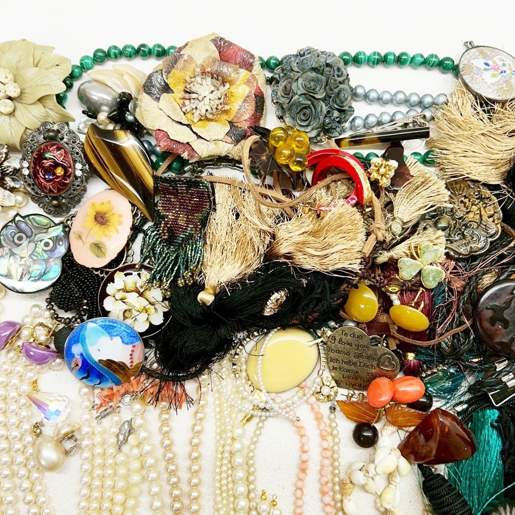 ▼商品特徴 商品に興味をもっていただき、ありがとうございます。 写真にありますアクセサリー類 まとめ商品です。 ◆商品 : アクセサリー類 卸 ・画像にあります様に多種多様なアクセサリーになります。 ※各商品材質など一切査定しておりませんのでご了承ください。 ◆総重量 : 1,215g ◆状 態 : USED ・金具の壊れているもの、傷、汚れがあるものもあります。 ※返金には対応出来ませんのでご了承ください。 ※同梱可能な場合もございますのでその際はおまとめ取引をご選択ください。 ※配送方法が複数ございますので同梱出来かねる場合がございます。 こちらで他にも出品中。Crew・actショップ↓↓ ![]() | ||
