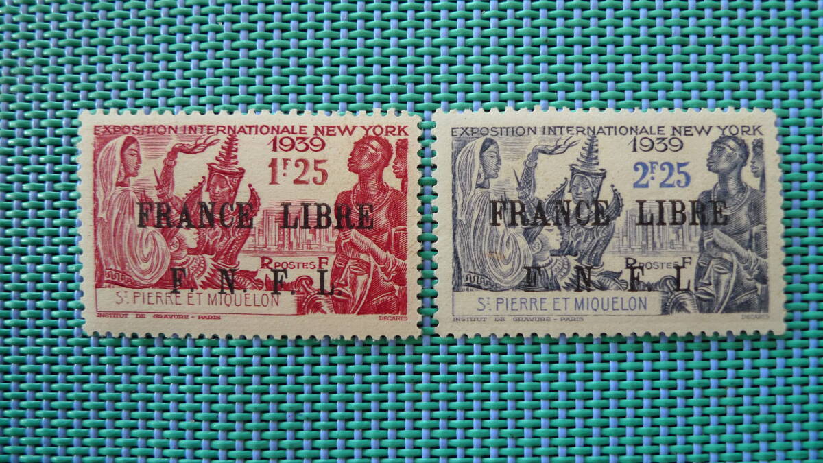 サンピエール・エ・ミクロン 1942年 ニューヨーク万国博覧会1939 (オーバープリント France libre F.N.F.L) 1f25,2f25 2種 未使用 MNH| 出价者 | 信用 | 价格 | 时间 |