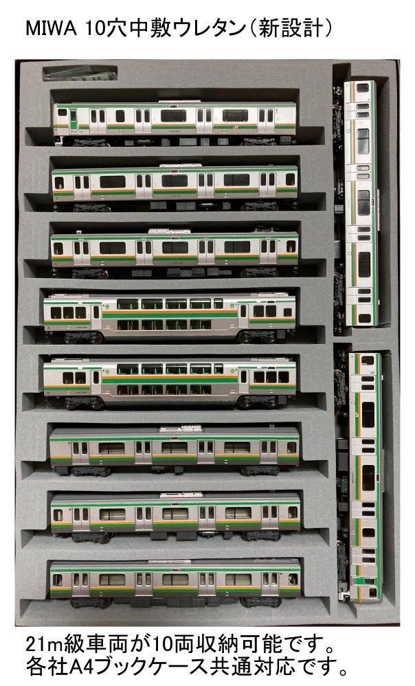 | 商品説明 | 純正の中敷ウレタンとの交換用ウレタンです。大型の21m車が10両収納可能です。外枠は少し小さめのKATOなどのケースにぴったりなので大型のマイクロエースやTOMIXへ使う場合は付属のスペーサーで隙間を埋めてください。大型車両を収納する場合、屋根上機器がウレタンと干渉する場合があります。こちらの商品はまとめてご購入がお勧めです。5枚パックは1枚当たり870円、10枚パックは1枚当たり820円にてご購入いただけます。5枚パック、10枚パックは弊社製品の他の中敷ウレタンとアソートも可能です!いづれも送料は無料です。 |