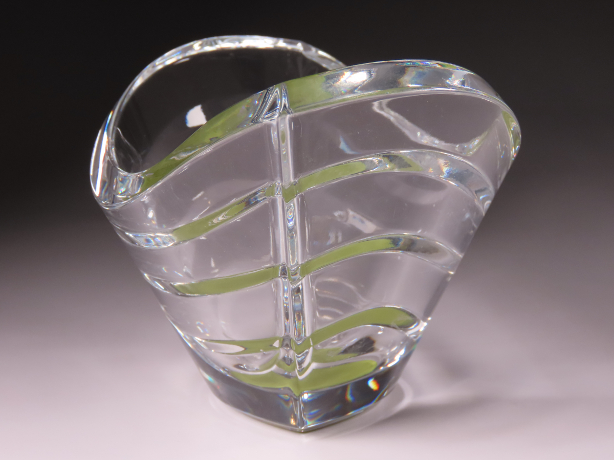 【ONES】Baccarat バカラ 最高級 クリスタル ウェーブボウル フラワーベース 花器 幅21.5cm 重量1.4kg オブジェ 西洋美術