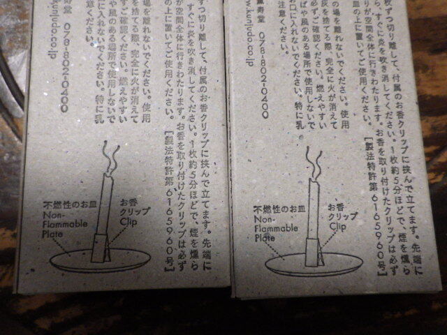 初めに自己紹介欄をお読み下さい。受け取り連絡されない方、オークション代行業者、落札後、3日以内に連絡できない方、3日以内に入金できない方、日本語の通じない方は入札しないで下さい。新品未使用 薫寿堂 和紙のお香 Washi Incense 2種 〇沈香 〇柑橘 定価1個935円 日本製 箱の大きさ 10.5×4.5×1 素人採寸ですので誤差はご理解ください。お香の薫寿堂の商品です。写真の通りです。未開封の和紙のお香です。分かる方のみの入札をお願いします。箱の裏に使い方が記載してあります。写真にて判断してください。過剰な期待の上での入札はご遠慮下さい。値段を釣り上げた上でのクレームはやめてください。素人検品ですので細かい箇所のクレームはご遠慮下さい。新規、評価の悪い方や低い方はこちらで入札を落札者都合取り消しさせていただきますので、ご了承ください。NC・NRでお願いします。いかなる理由でも返品は受け付けません。主観での出品ですので神経質な方は入札ご遠慮下さい。業者出品ではございませんので、細かいモデル名にこだわる方、後々ややこしいことを言われる方はトラブルの元ですので、絶対に入札しないで下さい。発送は定形外、レターパックのみです。迅速に対応していただける方のみの入札をお願いします。他にもいろいろ出品しています。良ければご覧下さい。薫寿堂 (Kunjudo) WASHI INCENSE 和紙のお香 1552