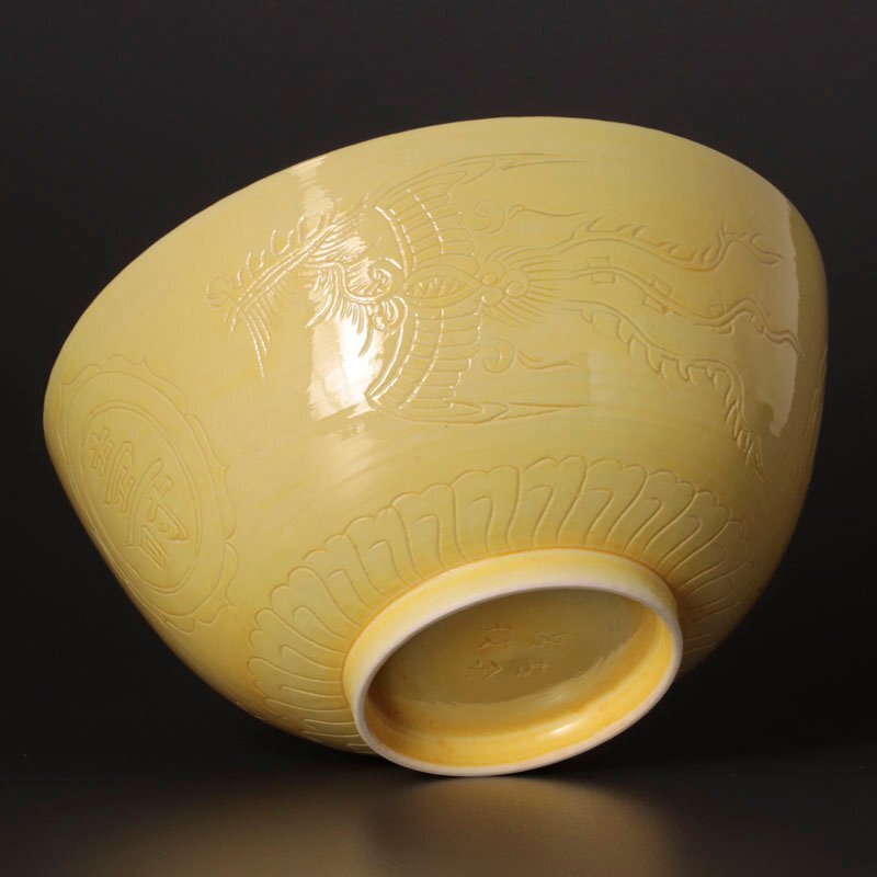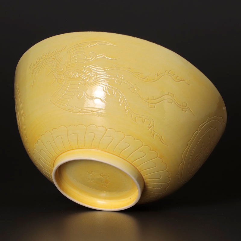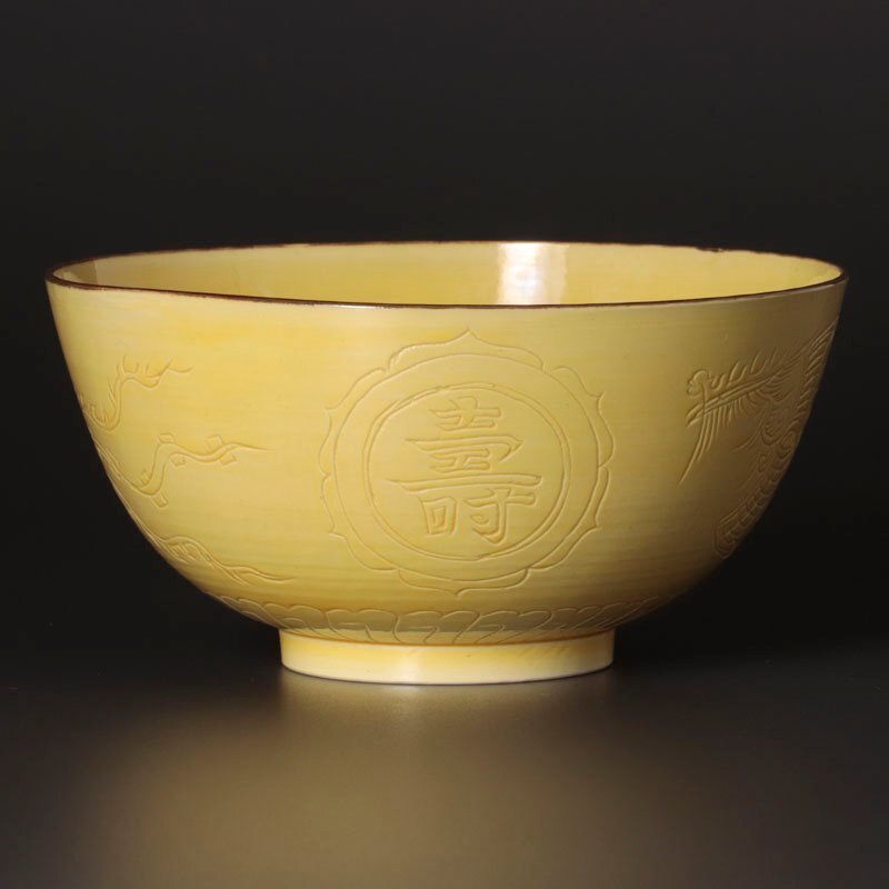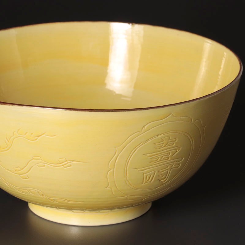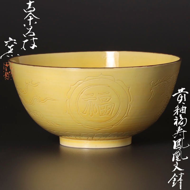 | 【古美味】古余呂技窯 黄釉福寿鳳凰文鉢 茶道具 保証品 |