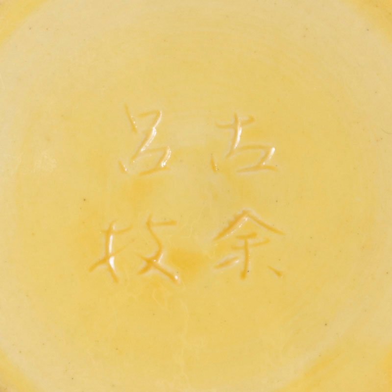 優しい色味の黄に福寿の文字と、鳳凰の絵柄が施されています。どこかポップで軽やかな雰囲気漂う作品です。 ★商品は古余呂技窯の作品である事を保証致します。 |