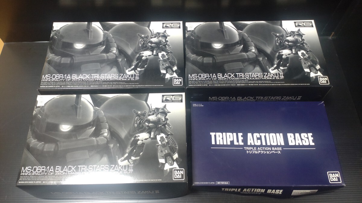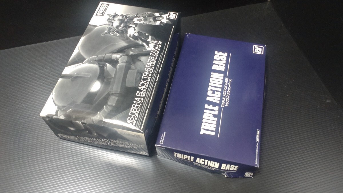 説明必読 プレミアムバンダイRG 1/144 黒い三連星専用ザクⅡ MS-06R-1A 3点 トリプルアクションベース 未組立 高機動型