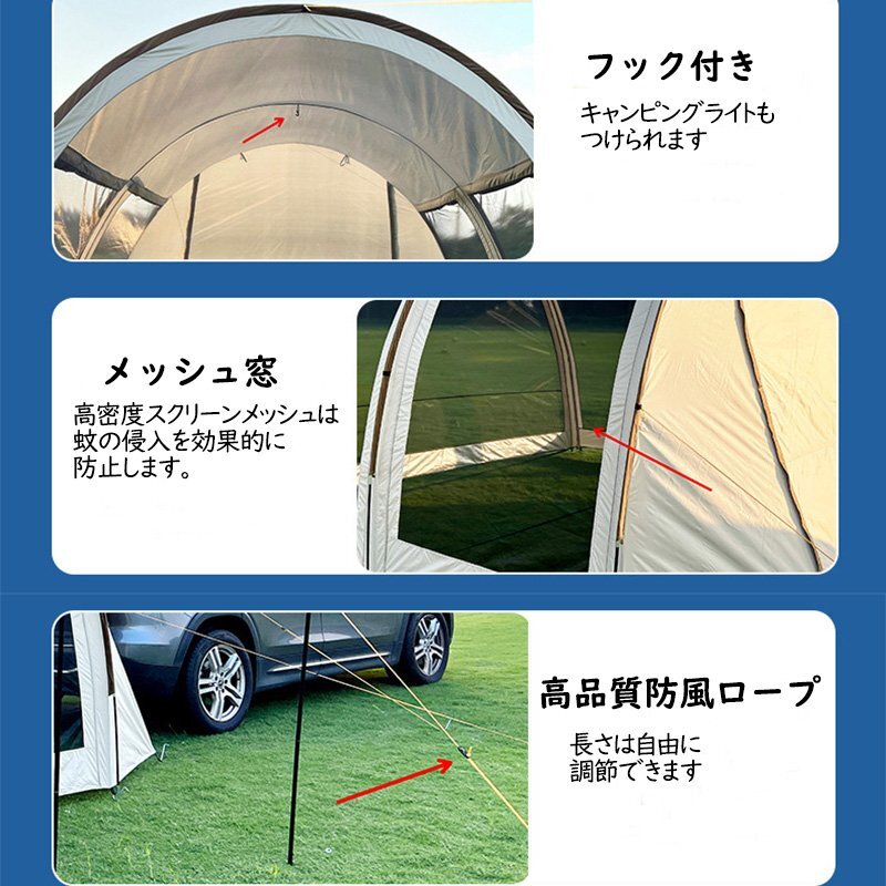 【広々とした空間】テントのは365mm*310mmで、4-6人収容可能。テントの高さは2.2mで、テントの中では腰を屈めずに歩くことができます。| 出价者 | 信用 | 价格 | 时间 |
