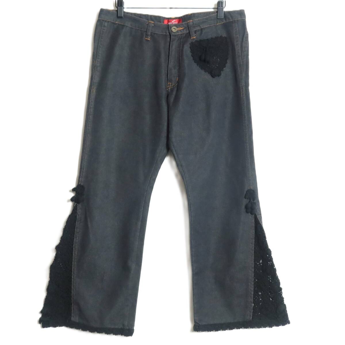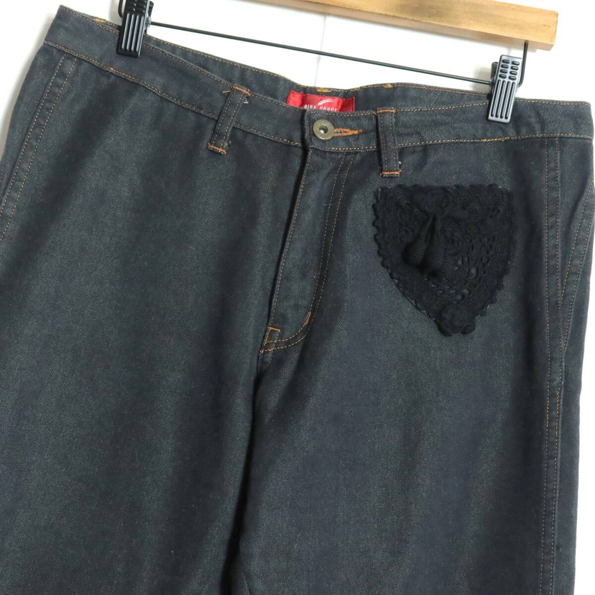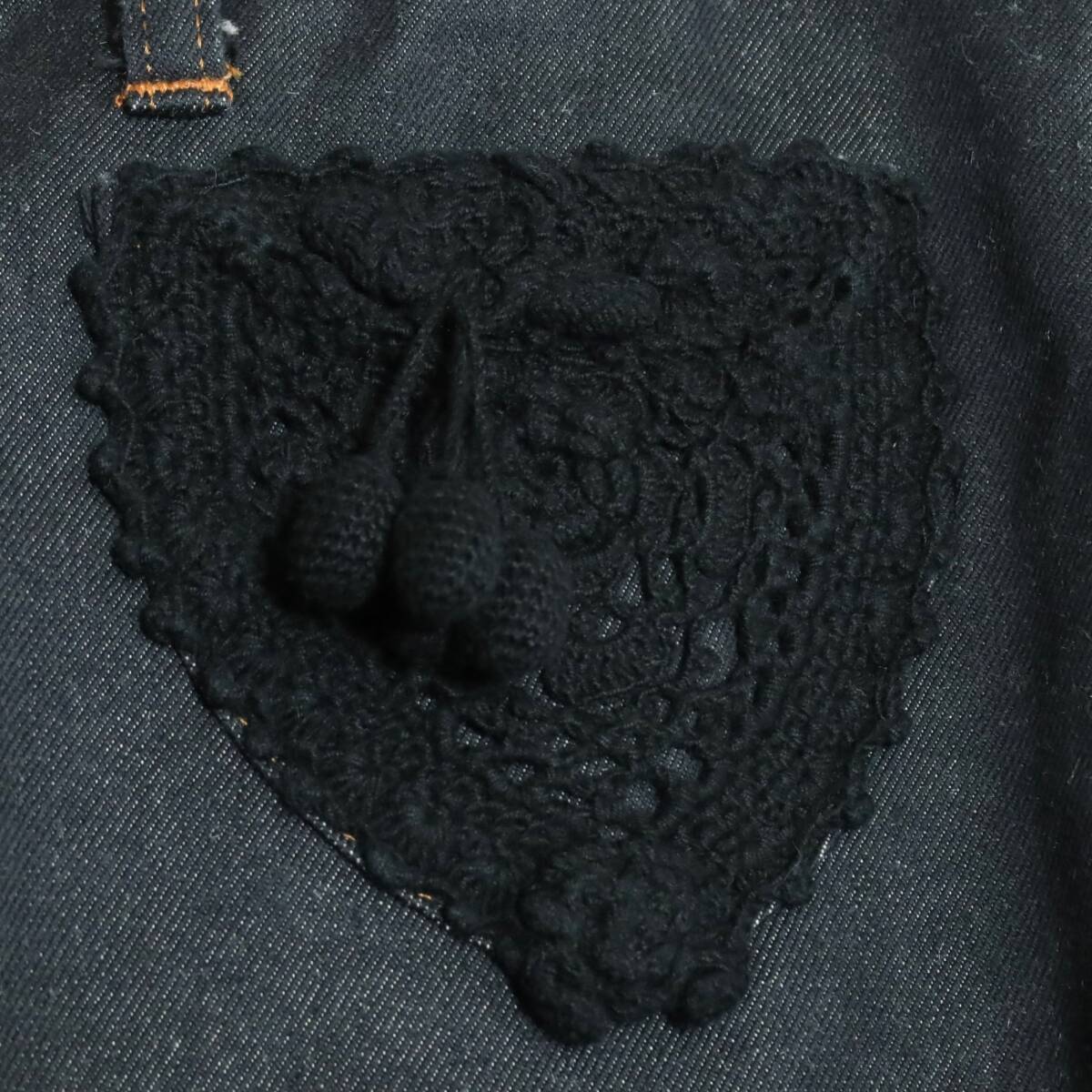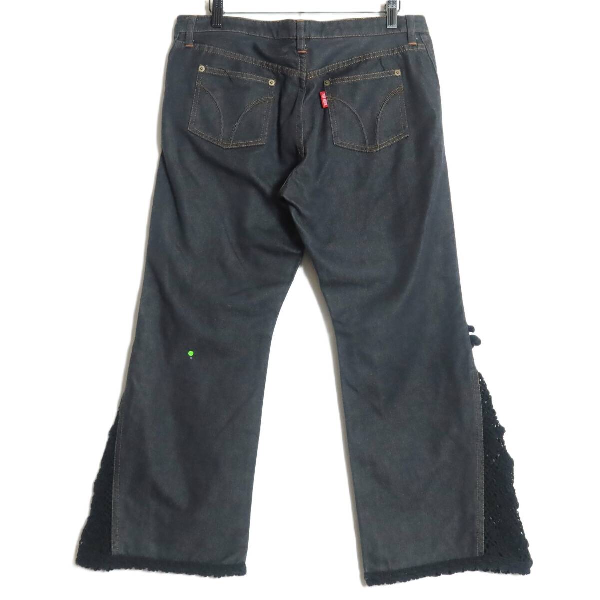 | 商品説明 | 【実寸約】ウエスト84ヒップ102股上25股下66太もも幅28(cm) 【サイズ表記】 L 【素材】 綿84ポリエステル13絹3% 【状態】普通の使用感のあるお品物 左ひざ後ろにひっかけ少々あり 【デザイン】黒系 デニムのクロップドパンツです。 薄手/無地/ポケットあり/ ベリーのニットモチーフ&裾にニットレース付き |
