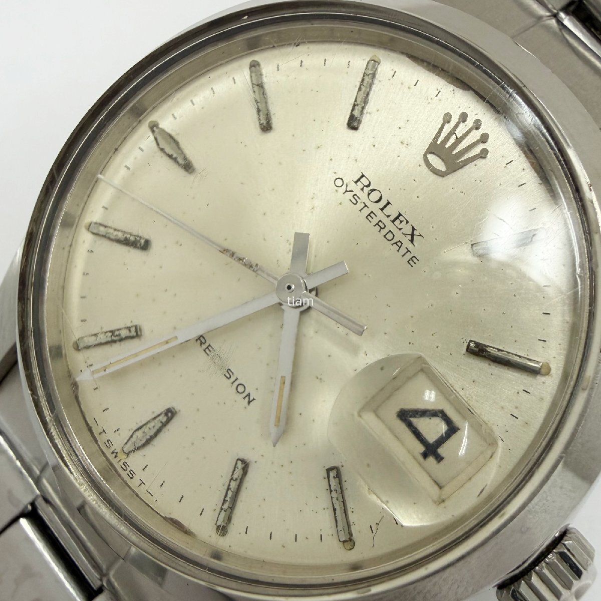 | ガラス: 薄い小傷がございます。 ダイヤル/針: ダイヤルにぷつぷつ、ヤケ、針とインデックスに劣化がございます。 ケース/ベゼル: 小傷がございます。 ブレス: 小傷、削れがございます。 その他: | ||