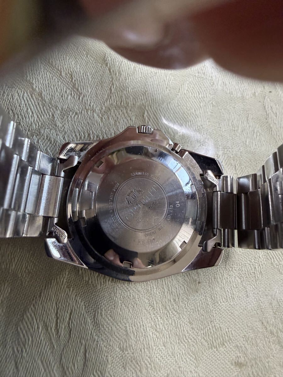 オリエントダイバーです。ガラスに傷が有ります。時計の詳細は分かりません、何年か前に中古を購入後、自分には(腕周り18.5cm)少しきついかったので、何回かしか使用していません、| 出价者 | 信用 | 价格 | 时间 |