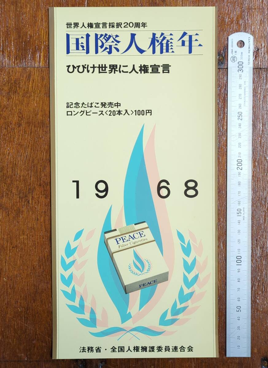 煙草 ポスター コレクター放出 ピース 国際人権年 1968年 たばこ タバコ 昭和レトロ 日本専売公社 非売品 広告 宣伝 店舗用 記念 当時物