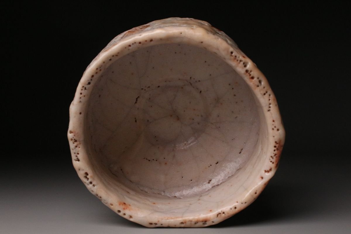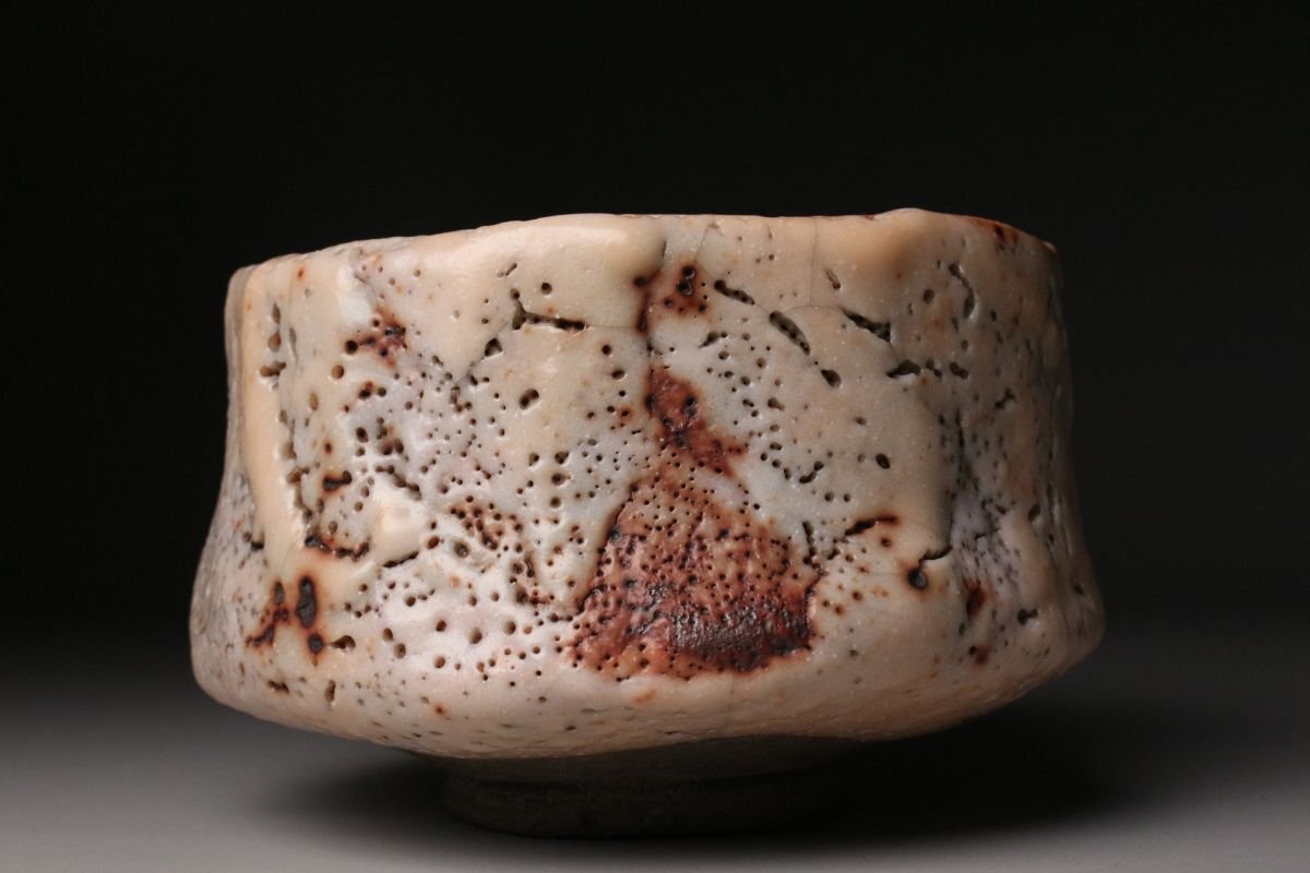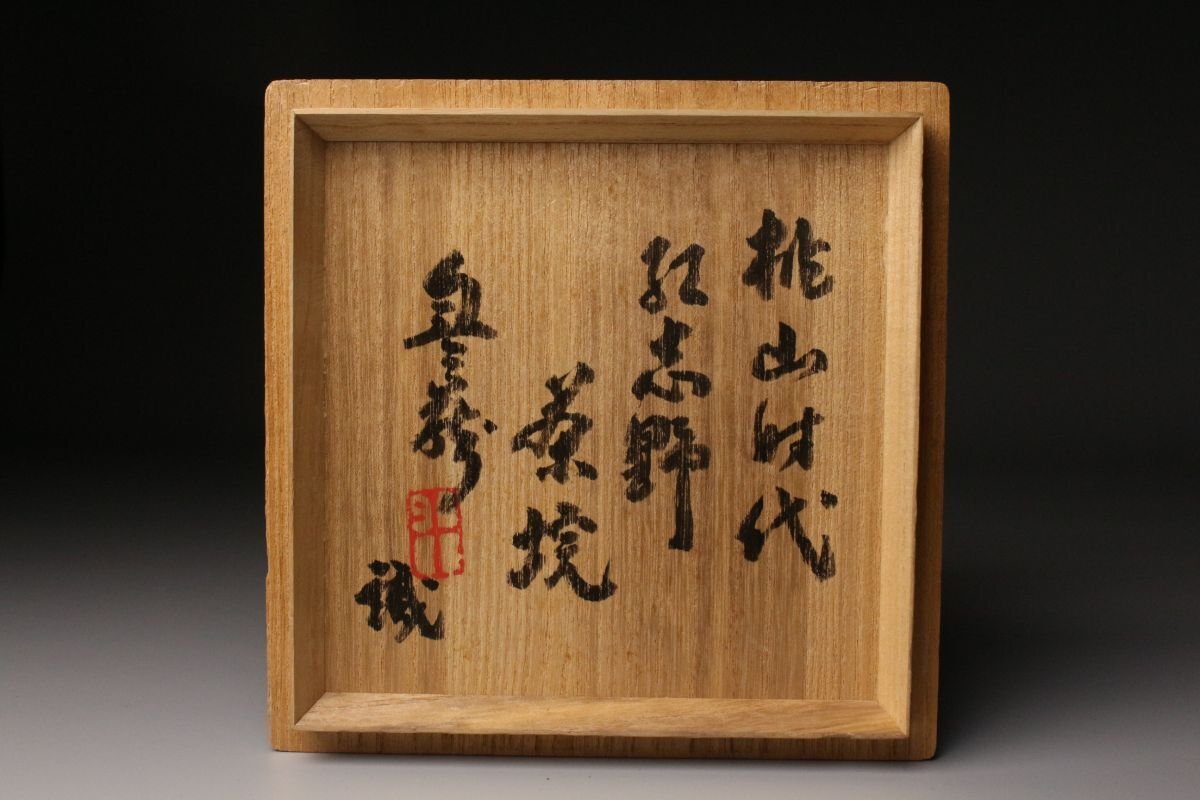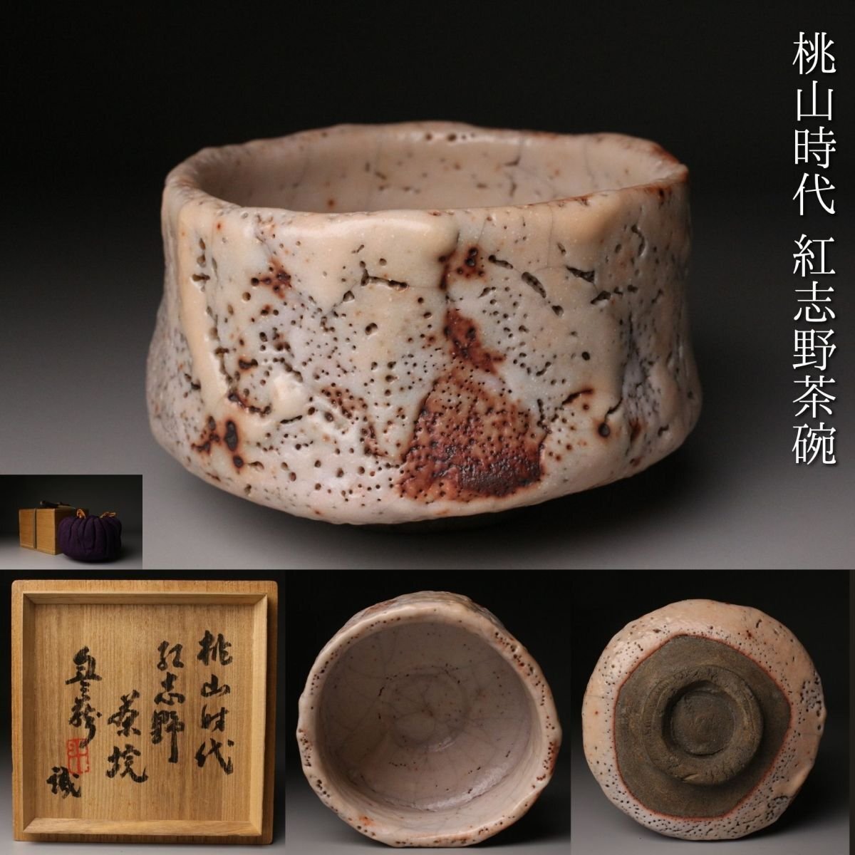 [.QQ]25.11 25111212T* * * 商品詳細 * * * ここでしか出逢うことのできない唯一の美をご紹介させて頂きます。 本作は、桃山時代の雄渾な気風を色濃く伝える「紅志野」の茶碗です。豪快な成形に、志野特有の長石釉厚く掛かり、部分的に淡い紅色を帯びる景色は、まさに桃山陶の醍醐味といえる迫力と温かみを宿しています。 大振りで手に持つとずっしりとした質感を感じます。 胴から口縁にかけてなだらかに反らした造形は手に包むとしっくりと収まり、荒々しさの中に人肌のような優しさを感じさせます。 さらに、本作には志野研究の第一人者であり、人間国宝にも認められた荒川豊蔵による識箱が添えられており、その由緒と価値を一層確かなものにしています。桃山の息吹を今に伝える一碗として、茶席においても鑑賞においても特別な存在となる逸品です。 ■商品内容/ 茶碗、仕服、書付箱 ■サイズ/横15㎝×高9㎝ 箱:四方17㎝×高13㎝ ■状態/ 経年によるスレ、小傷、汚れ 箱にスレ、小傷、汚れがございます。 ※写真にてご確認、ご了承の上ご入札下さい。