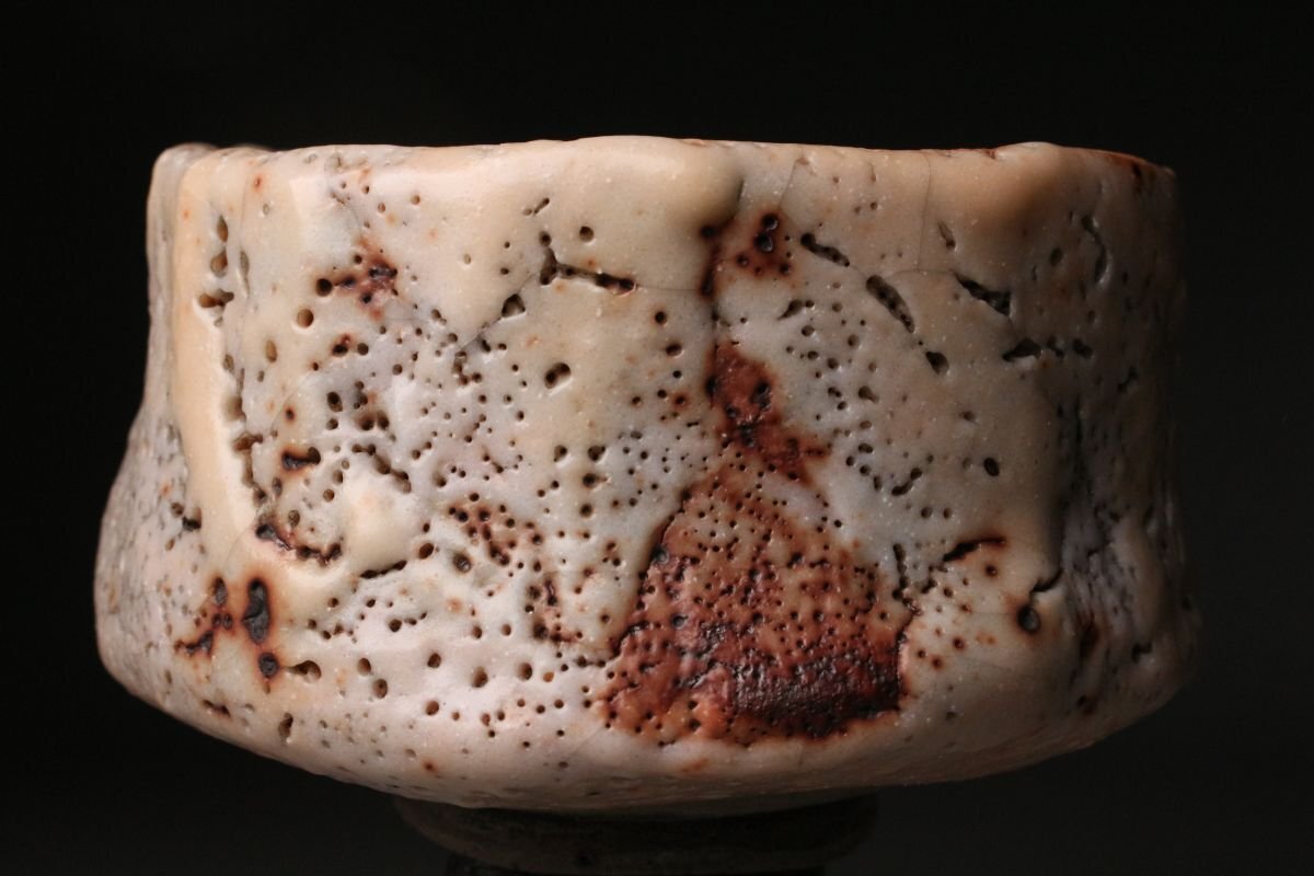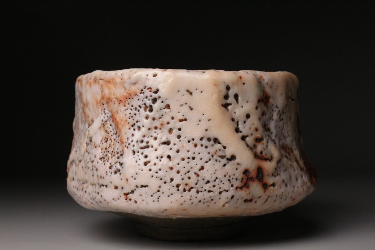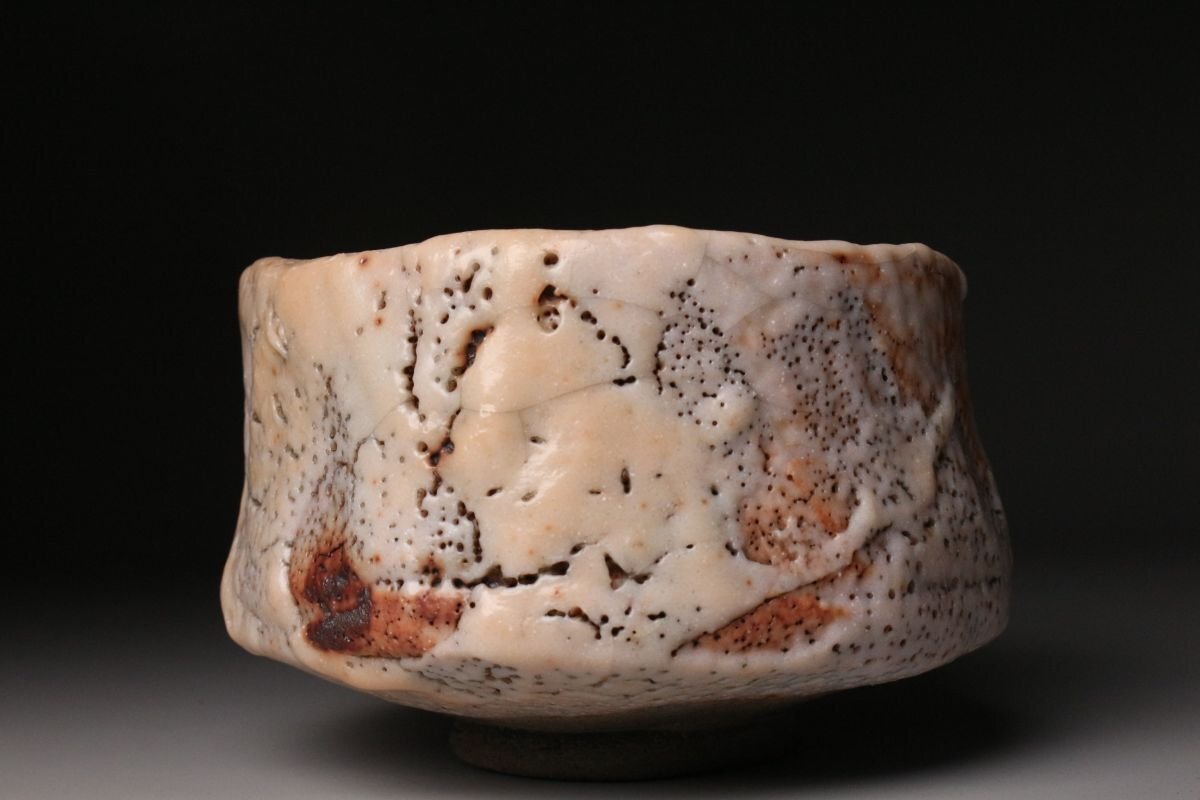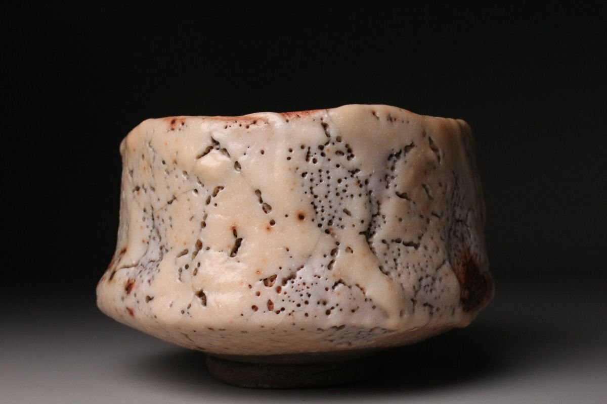 [.QQ]25.11 25111212T* * * 商品詳細 * * * ここでしか出逢うことのできない唯一の美をご紹介させて頂きます。 本作は、桃山時代の雄渾な気風を色濃く伝える「紅志野」の茶碗です。豪快な成形に、志野特有の長石釉厚く掛かり、部分的に淡い紅色を帯びる景色は、まさに桃山陶の醍醐味といえる迫力と温かみを宿しています。 大振りで手に持つとずっしりとした質感を感じます。 胴から口縁にかけてなだらかに反らした造形は手に包むとしっくりと収まり、荒々しさの中に人肌のような優しさを感じさせます。 さらに、本作には志野研究の第一人者であり、人間国宝にも認められた荒川豊蔵による識箱が添えられており、その由緒と価値を一層確かなものにしています。桃山の息吹を今に伝える一碗として、茶席においても鑑賞においても特別な存在となる逸品です。 ■商品内容/ 茶碗、仕服、書付箱 ■サイズ/横15㎝×高9㎝ 箱:四方17㎝×高13㎝ ■状態/ 経年によるスレ、小傷、汚れ 箱にスレ、小傷、汚れがございます。 ※写真にてご確認、ご了承の上ご入札下さい。