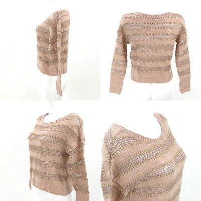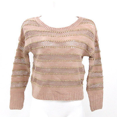 | 柔らかなニットとラメ入りの糸との相性が絶妙にマッチしたおしゃれな 一枚が入荷致しました! 控えめなピンクベージュのお色目も大人可愛い印象で◎ 短い着丈と透け感のあるデザインですっきりと着て頂くことができ ますよ☆ 着丈約40㎝ 袖丈約39㎝ 肩幅約43㎝ バスト約88㎝ 【サイズ】:(M) 【素 材】:(毛 71% 麻 29% ラメ部分 アクリル 53% ナイロン 47%) 【 色 】:(ピンク) 【程 度】:(A) 8360-20130220-134 379 021 | ||||