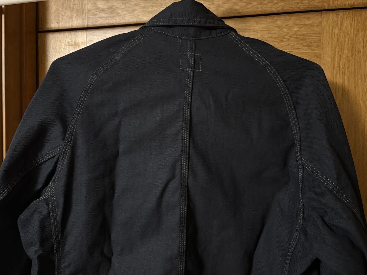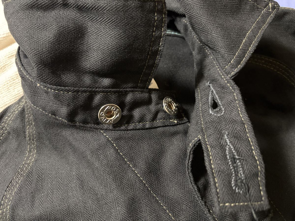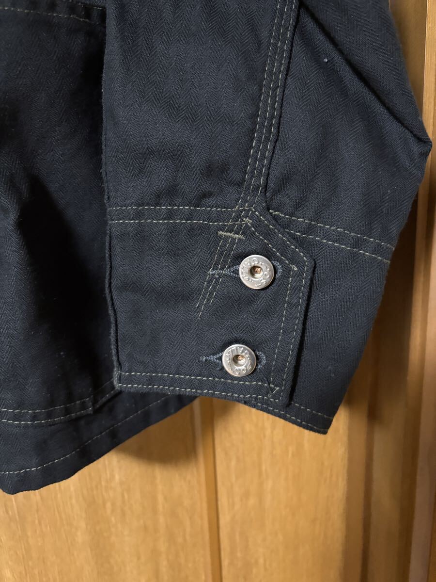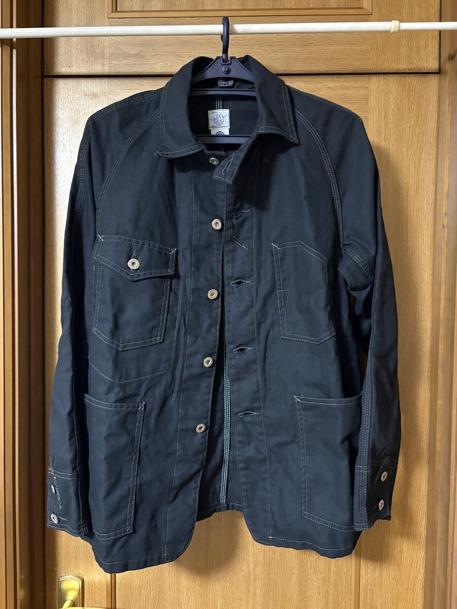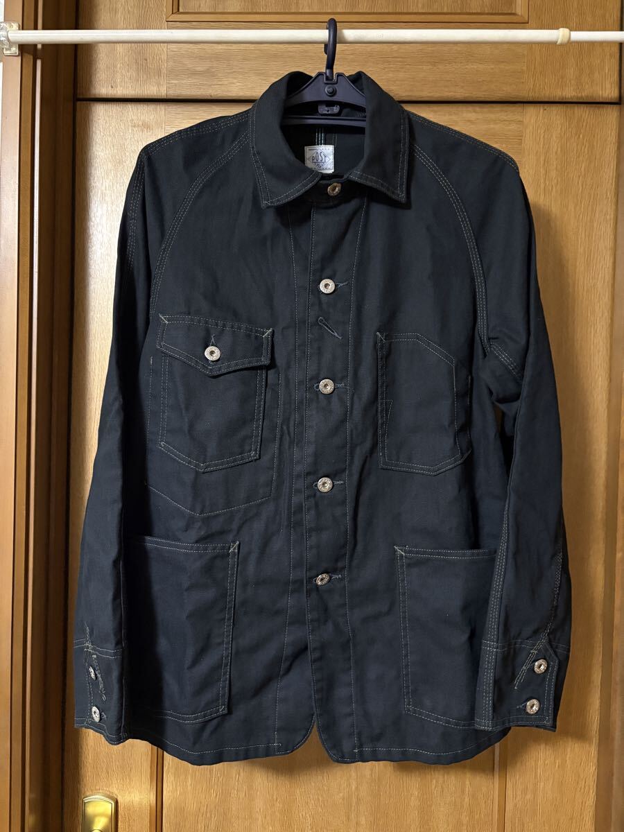 POSTOVERALLS ポストオーバーオールズ ヘリンボーン織カバーオールです。使用感少なく、汚れやダメージの無い美中古品です。サイズはMで、おおよその寸法が 身幅54 着丈68 裄丈84 といったところです。ポスト定番のカバーオール(エンジニアーズジャケット)です。黒のヘリンボーン織の生地がとても渋くてカッコいいです。米国製時代のものとなります。お好きな方、いかがでしょうか?よろしくお願いいたします。