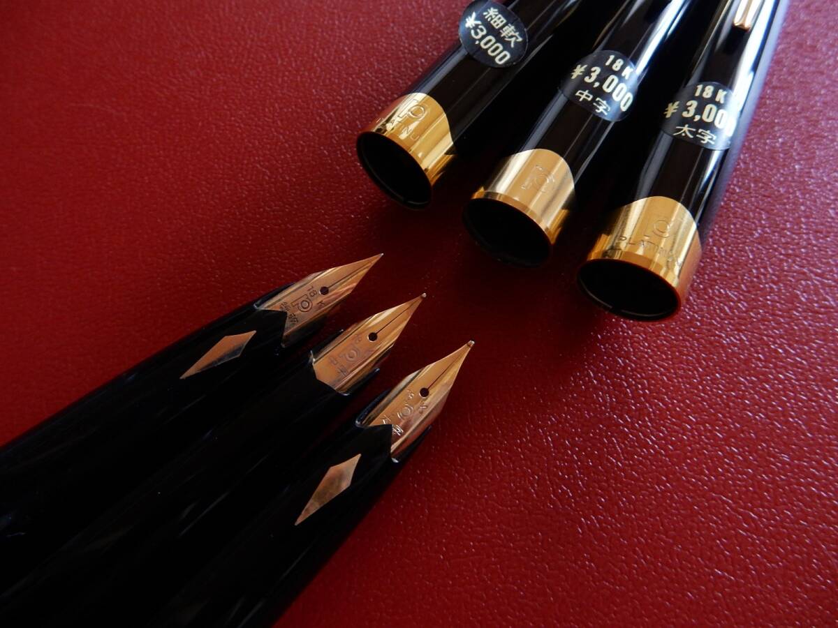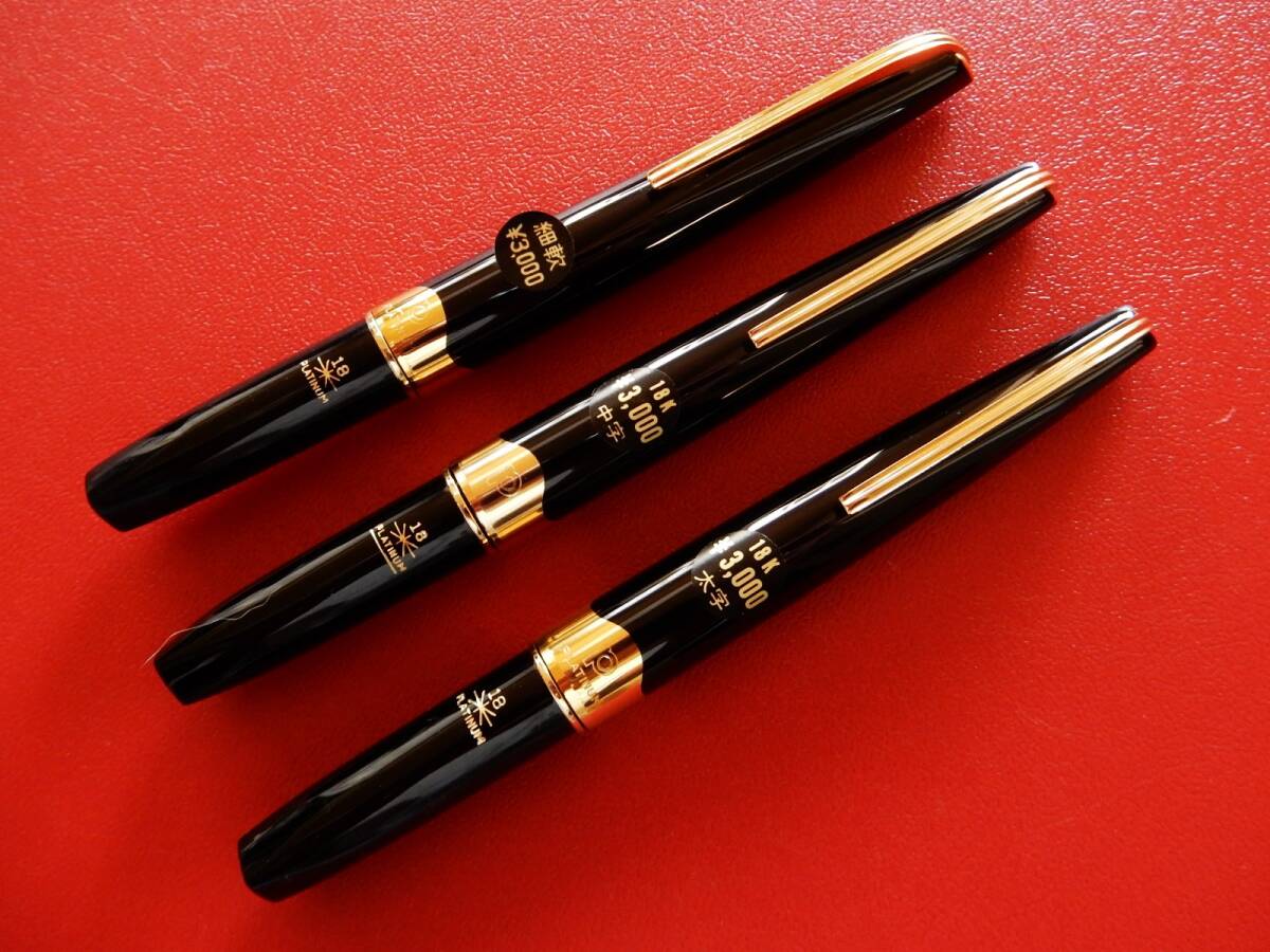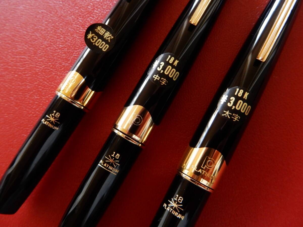 ■売切■昭和レトロ■プラチナ/PLATINUM■[18K 細軟 中字 太字 刻印] 万年筆 3本■当時物/未使用/デッドストック/筆記用具/文具