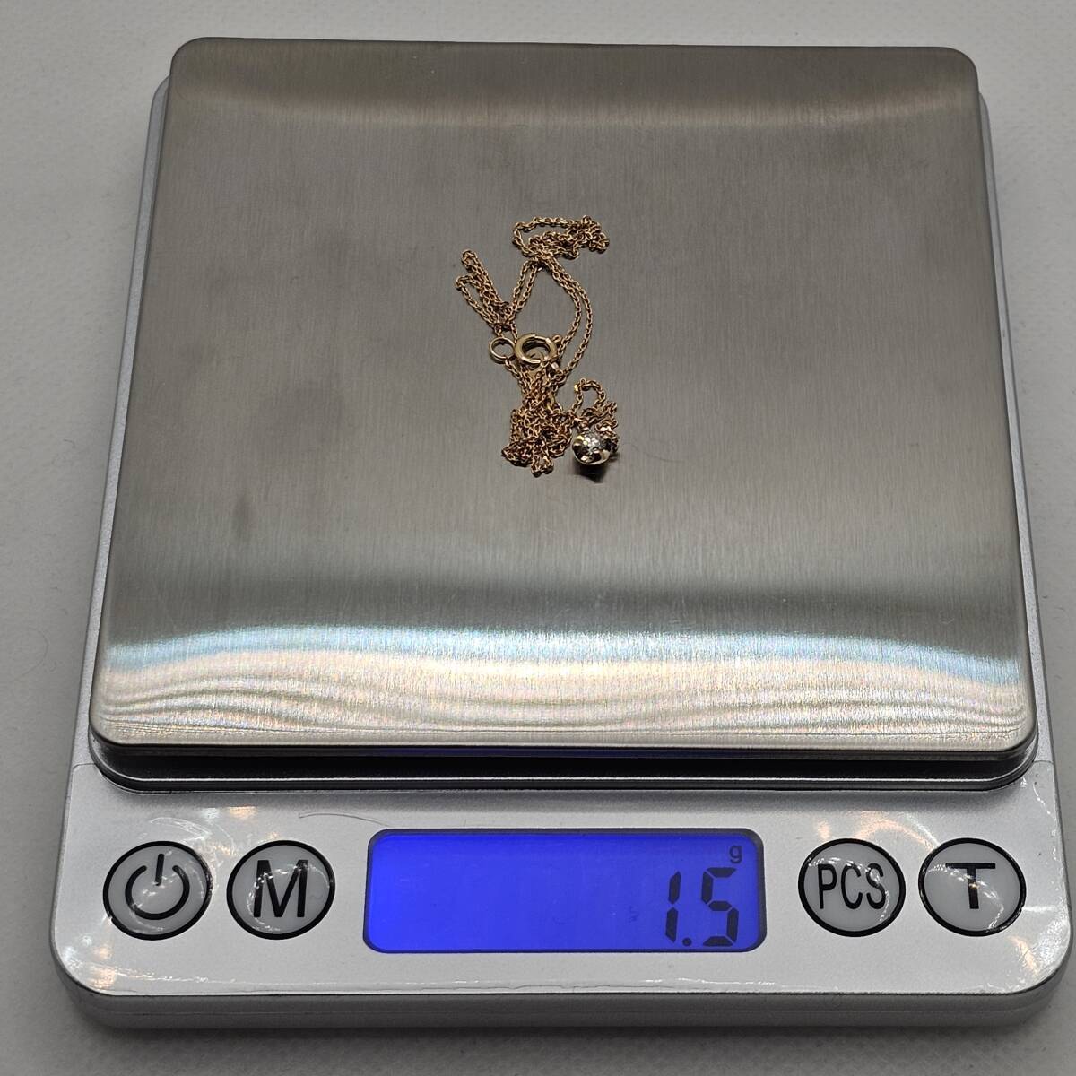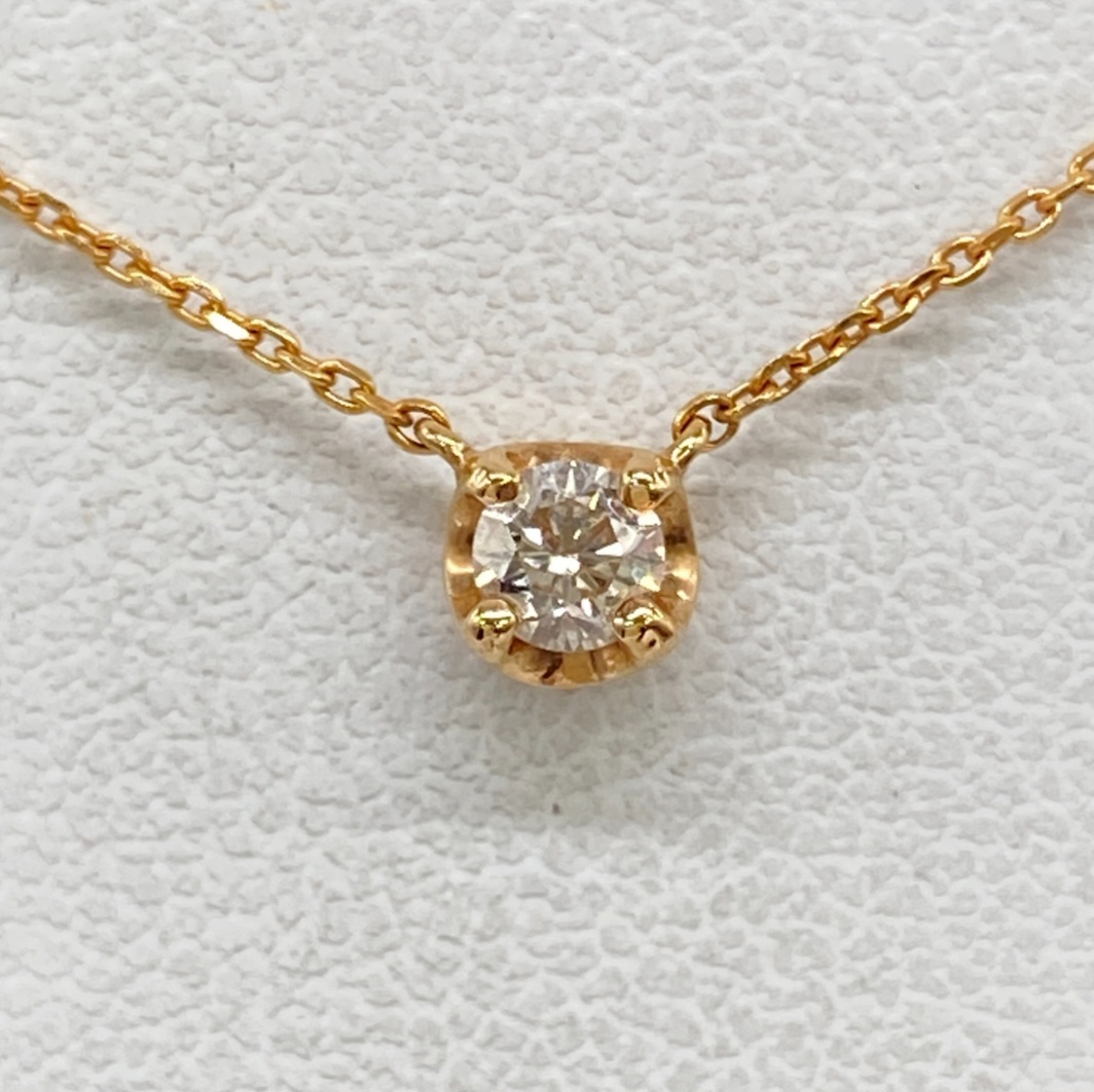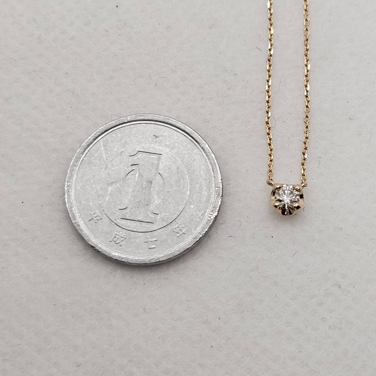 こちらは、K18イエローゴールドに**天然ダイヤモンド0.13ct**をあしらったネックレスです。