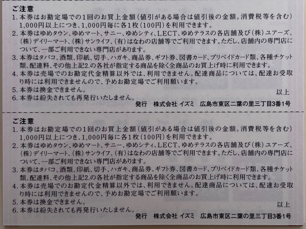 ■「イズミ」の株主優待| 出价者 | 信用 | 价格 | 时间 |