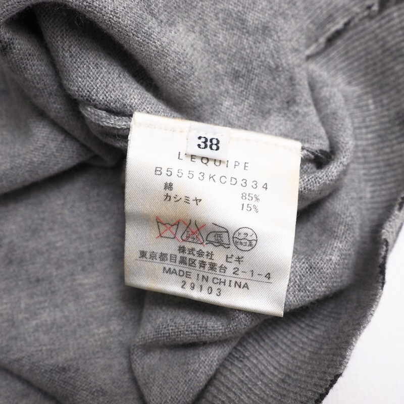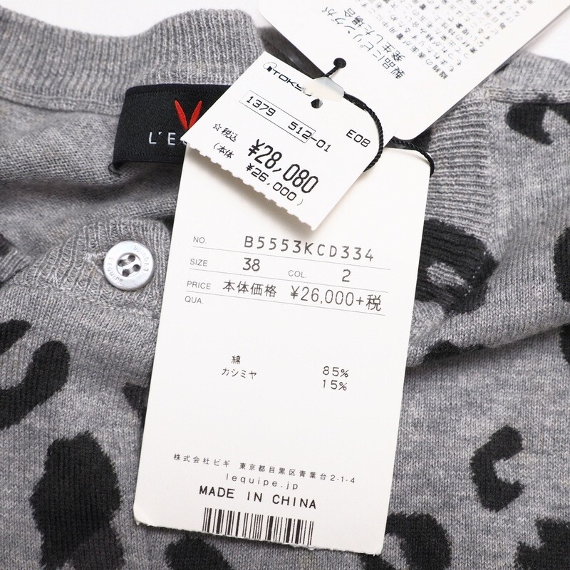 | MI3553▼未使用/定価2.6万円*レキップ L'EQUIPE*コットン×カシミヤ 総柄 ニット カーディガン サイズ38 グレー×ブラック系 | |||