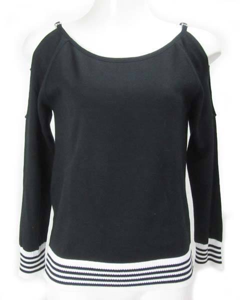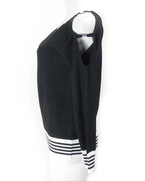 | ヘルシーな肌見せが叶うスリットニット☆サラリとして柔らかなコットンニット素材です。袖口と裾のボーダーが爽やかで、セクシーになりすぎずカッコよく着こなせますよ♪肩スリットにきらりと光るストーンチャームがアクセント♪スカートにもパンツにも合わせやすいアイテムです。 |