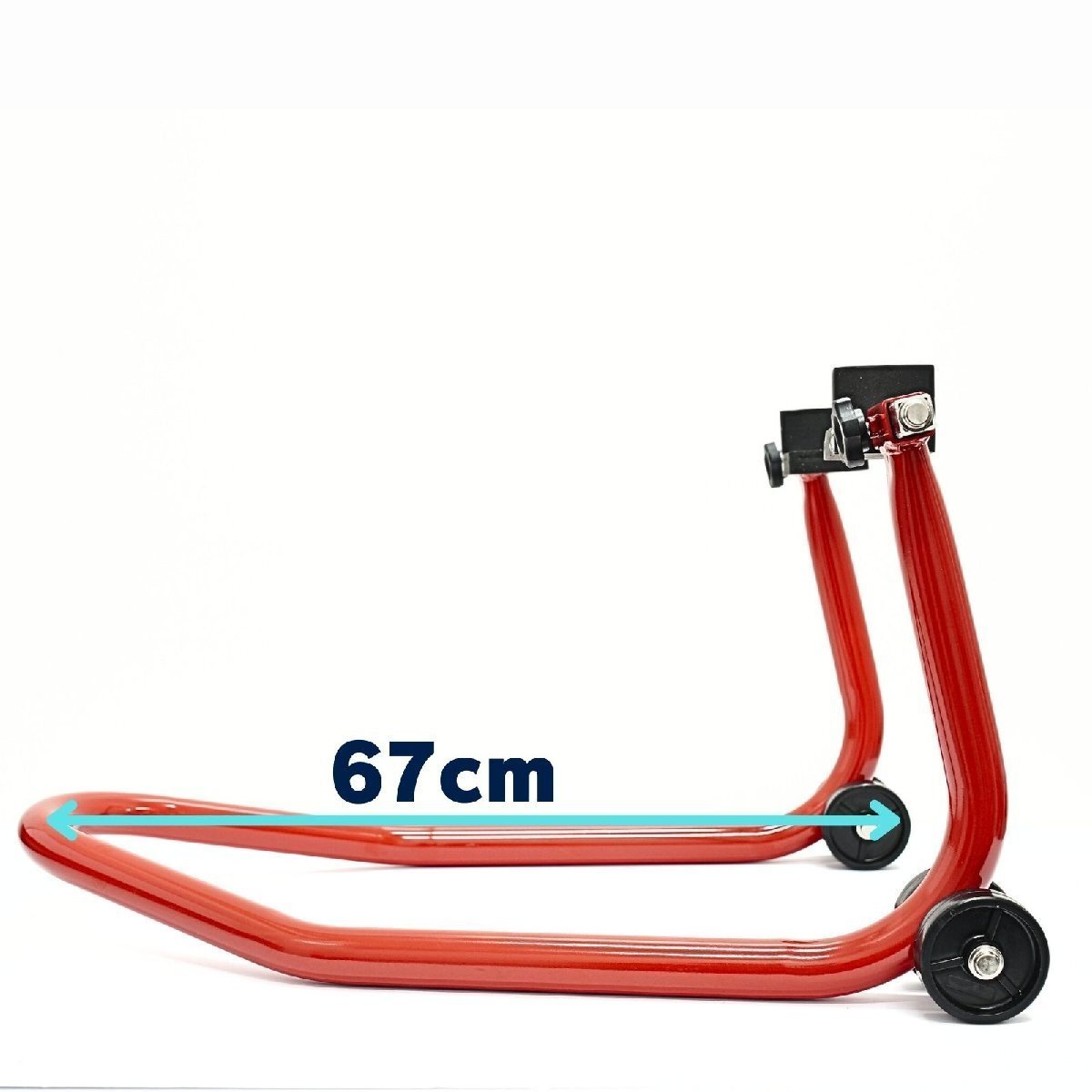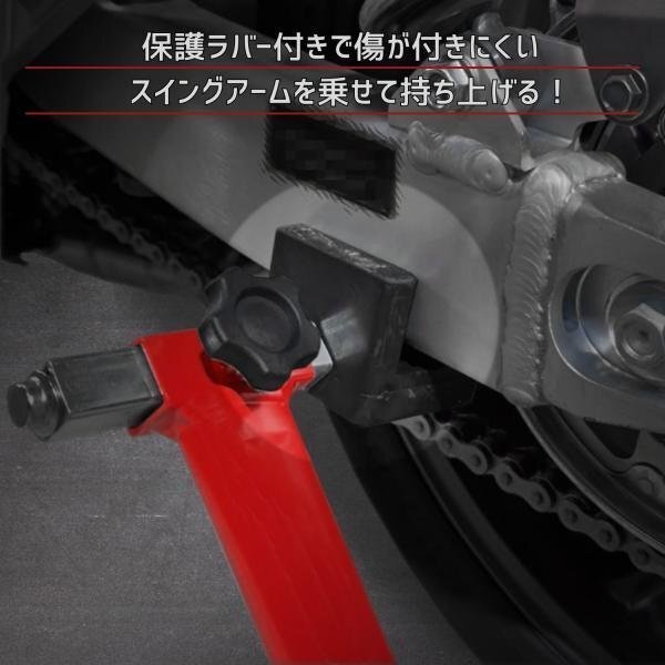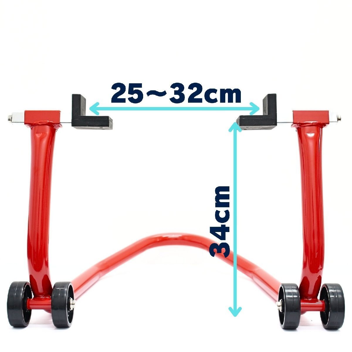 | 商 品 詳 細 | 後輪専用メンテナンススタンド。 2.0mm厚、Φ35の極太パイプの最強バイクスタンド。 最大幅320mmで、国産/輸入車問わず対応。 抜群の安定感(T型ラバー)と、上げ下ろしが楽な形状など細部まで拘ったスタンドです。 保持面はラバー付きでスイングアームに傷が付きません