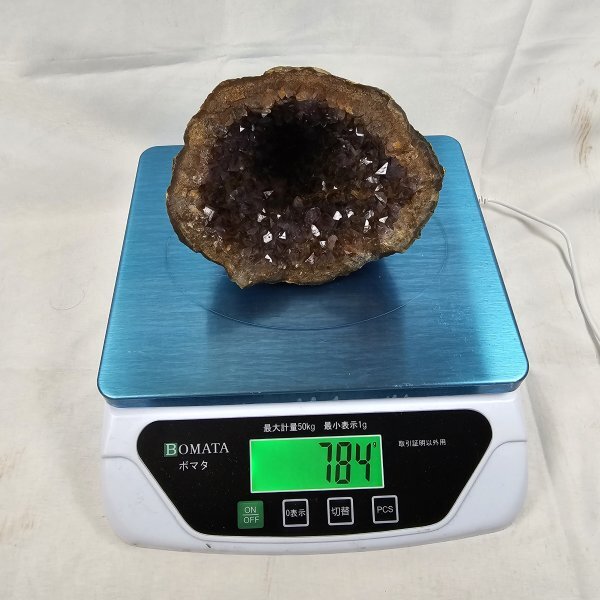 深い紫色の結晶が美しい、**約785g**と存在感のある天然のアメジストクラスターです。