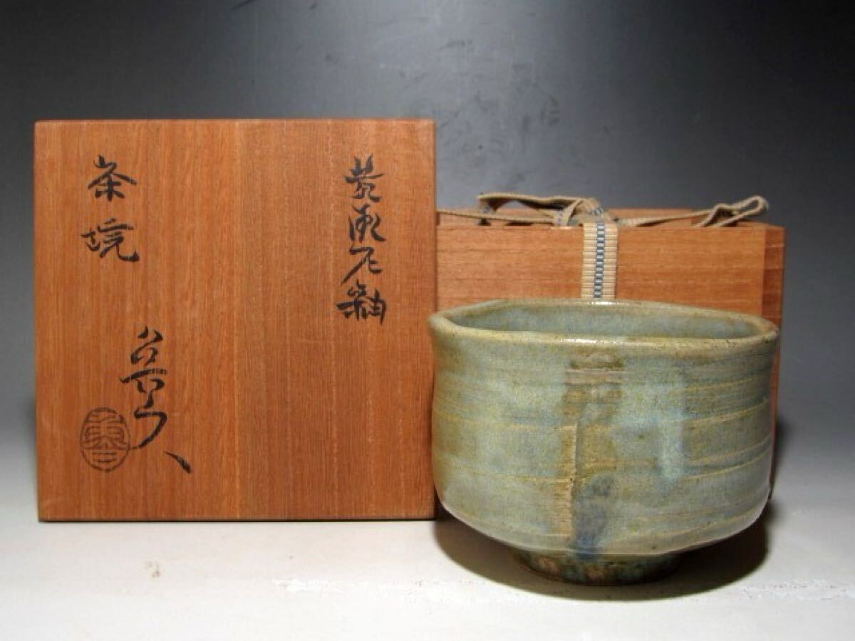 北大路魯山人作の黄瀬戸茶碗です。 趣のある見事な出来栄えの逸品です。 【北大路魯山人(きたおおじろさんじん)1883-1959】 陶芸家。京都上賀茂出身。 近代美術史の中でも異色の芸術家で、篆刻家・画家・陶芸家・書道家・漆芸家・料理家・美食家などの様々な顔を持っている。 大正期に「美食倶楽部」「星岡茶寮」を創業し、使用するすべての食器を創案製作。以後ひたすら陶芸に没頭する。 織部焼の重要無形文化財保持者(人間国宝)に指定されるも辞退。 サイズ 直径11cm/高さ8.5cm(多少の誤差はお許しください) 状態 一見して疵やヒビ・直しは見られません。 骨董品という事をご勘案頂き、時代経過のスレや、小さな傷がある場合があるかもしれませんのでご承知置きください。 | |||