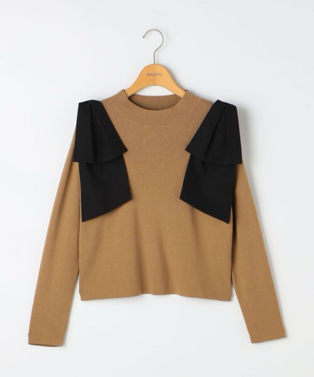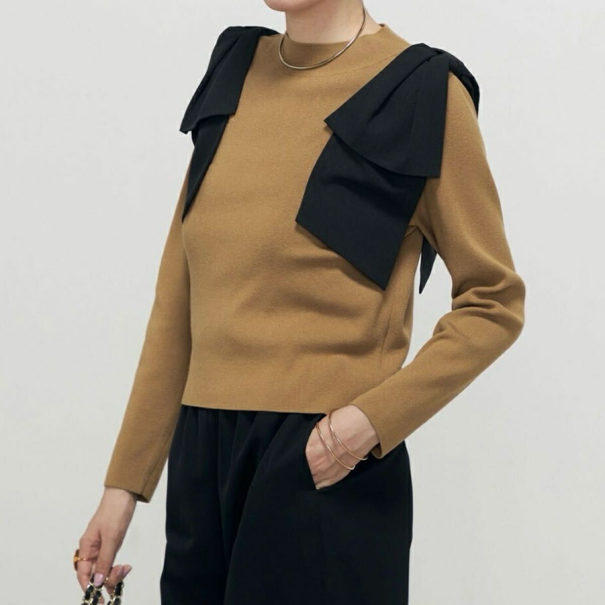・両肩にリボンが付いた総針ゴム地のクルーネックプルオーバー