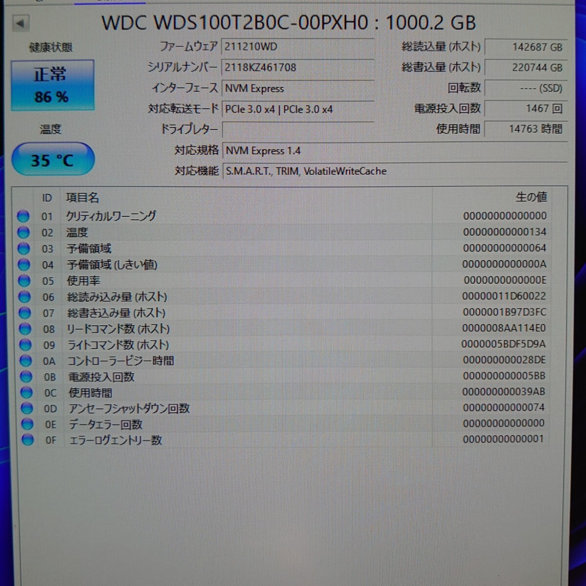 出品にあたりCrystalDiskInfoにて正常判定を確認しています。