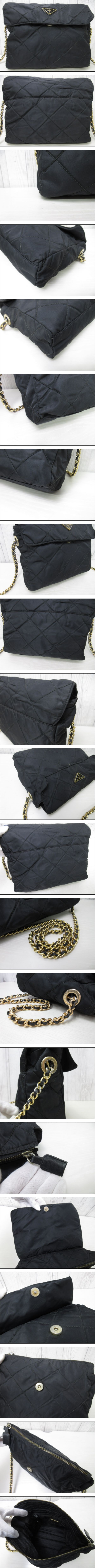 | 美品 PRADA プラダ テスート キルティング ゴールドチェーン ショルダーバッグ バッグ ナイロン×サフィアーノレザー 黒 93555 | ||